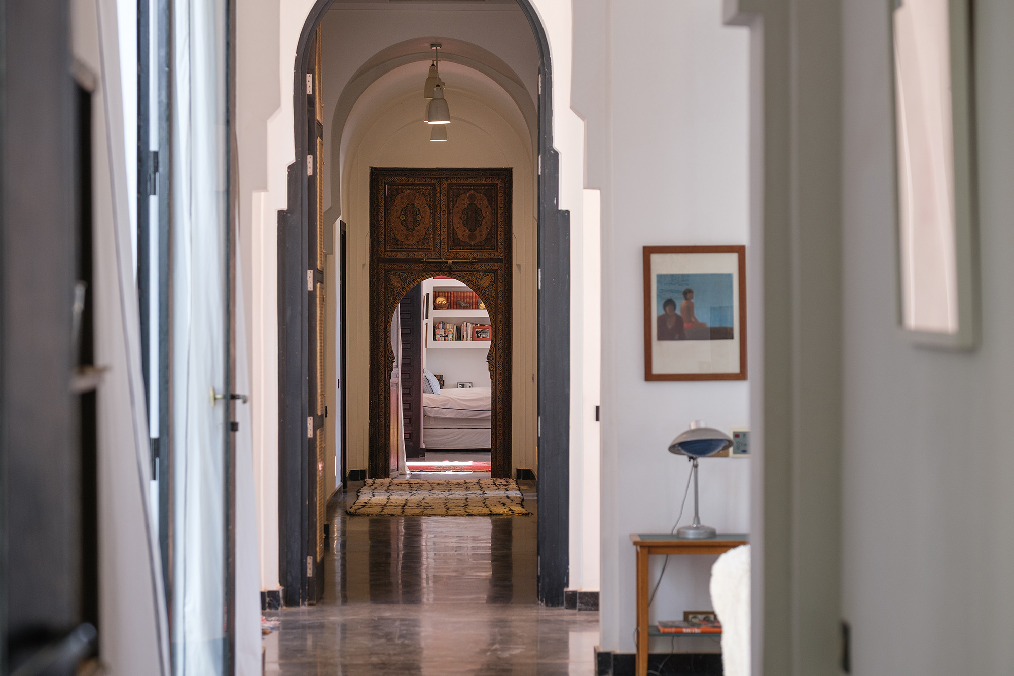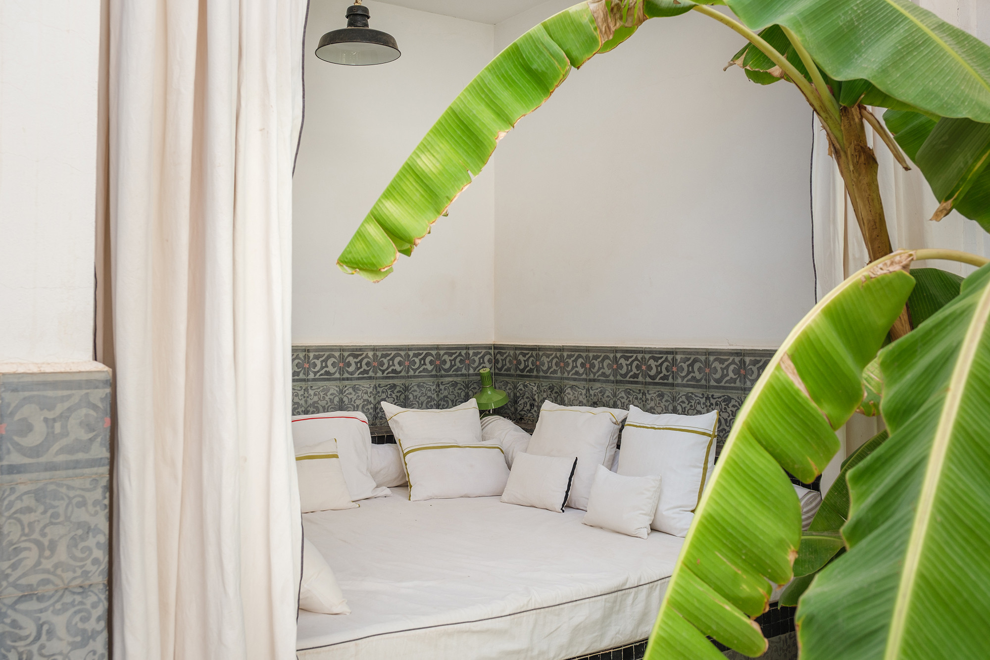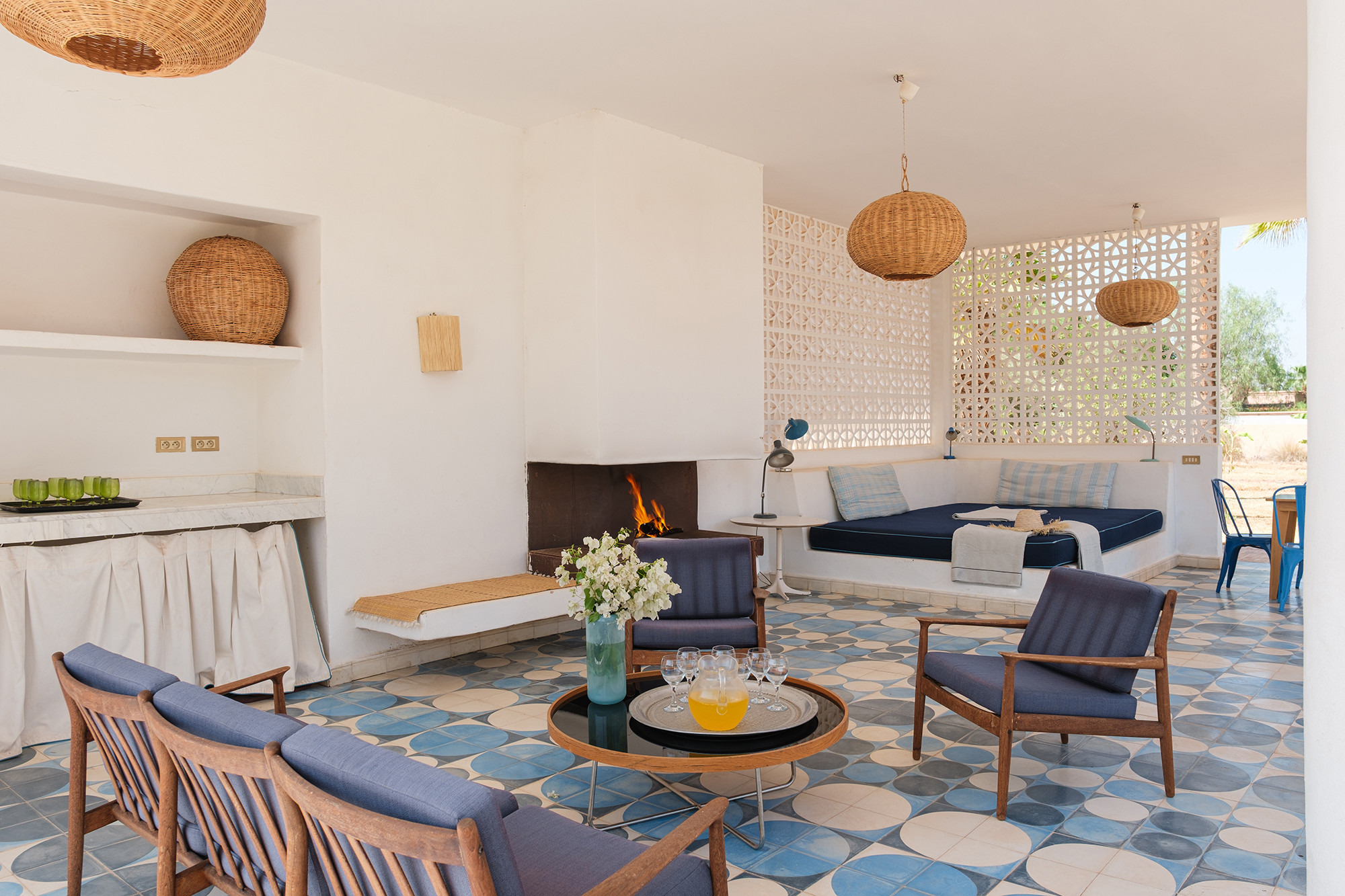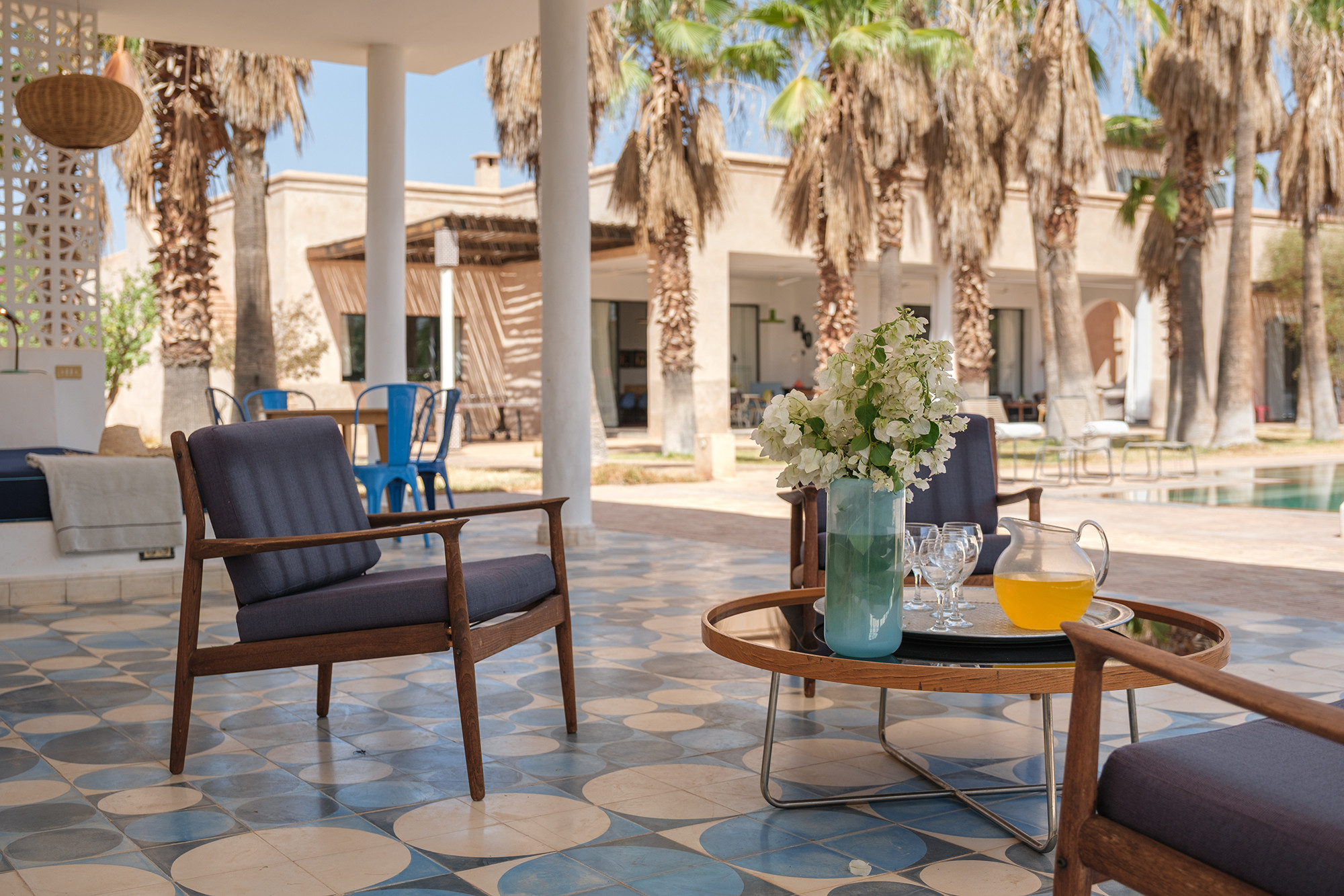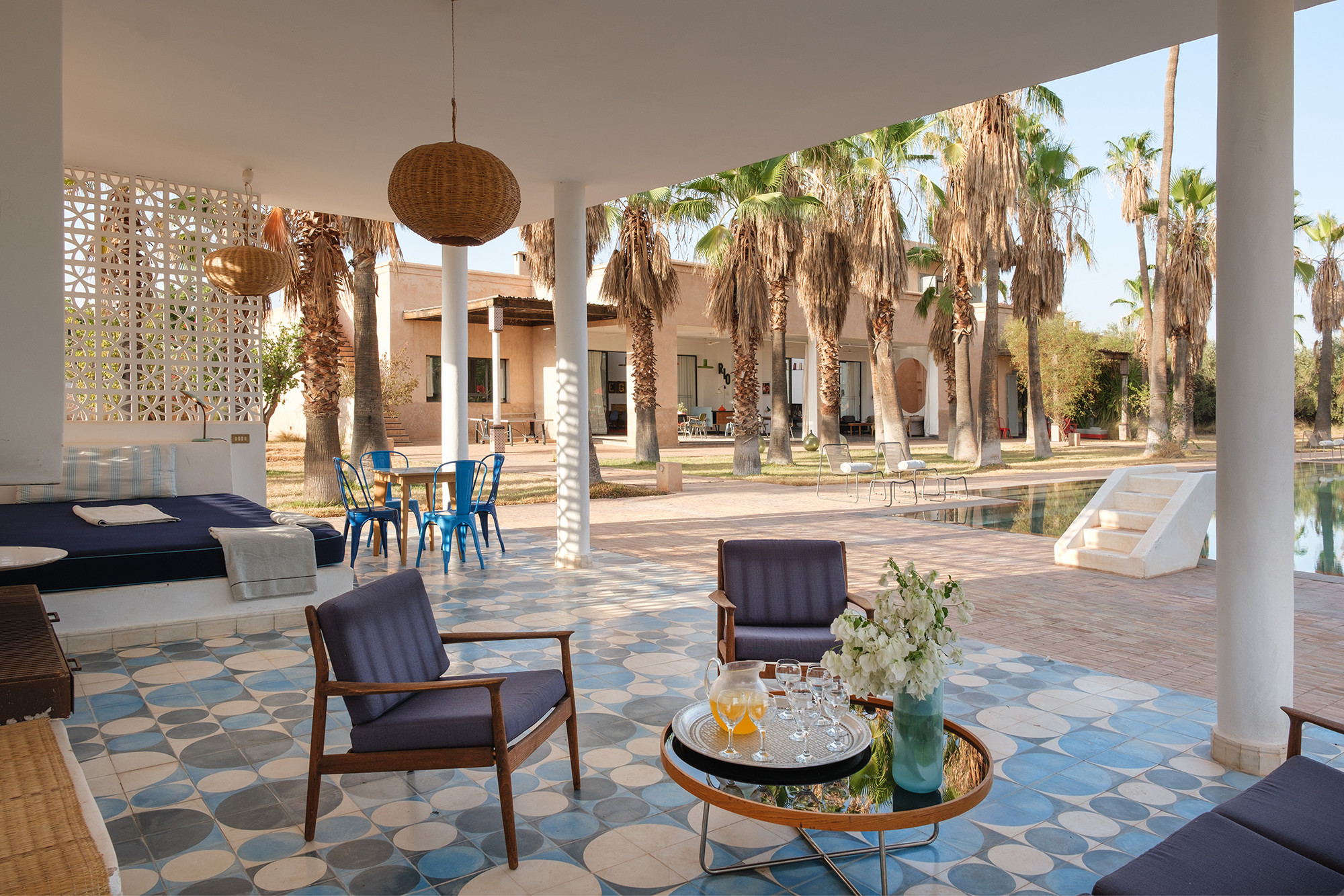 • Signature décorative Corinne Bensimon : alliance de pièces vintage et éditions contemporaines, palette subtile, zelliges, tadelakt et savoir-faire marocain en filigrane.