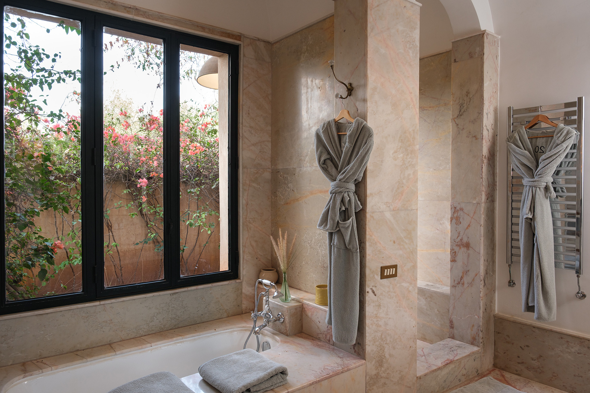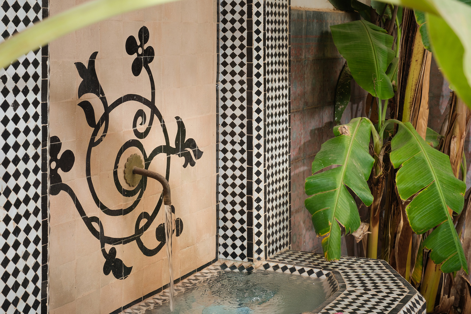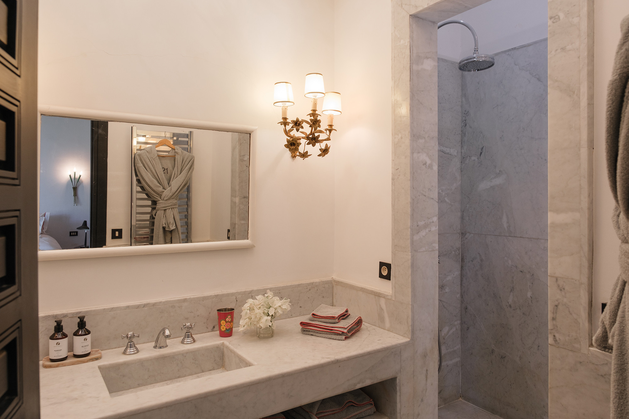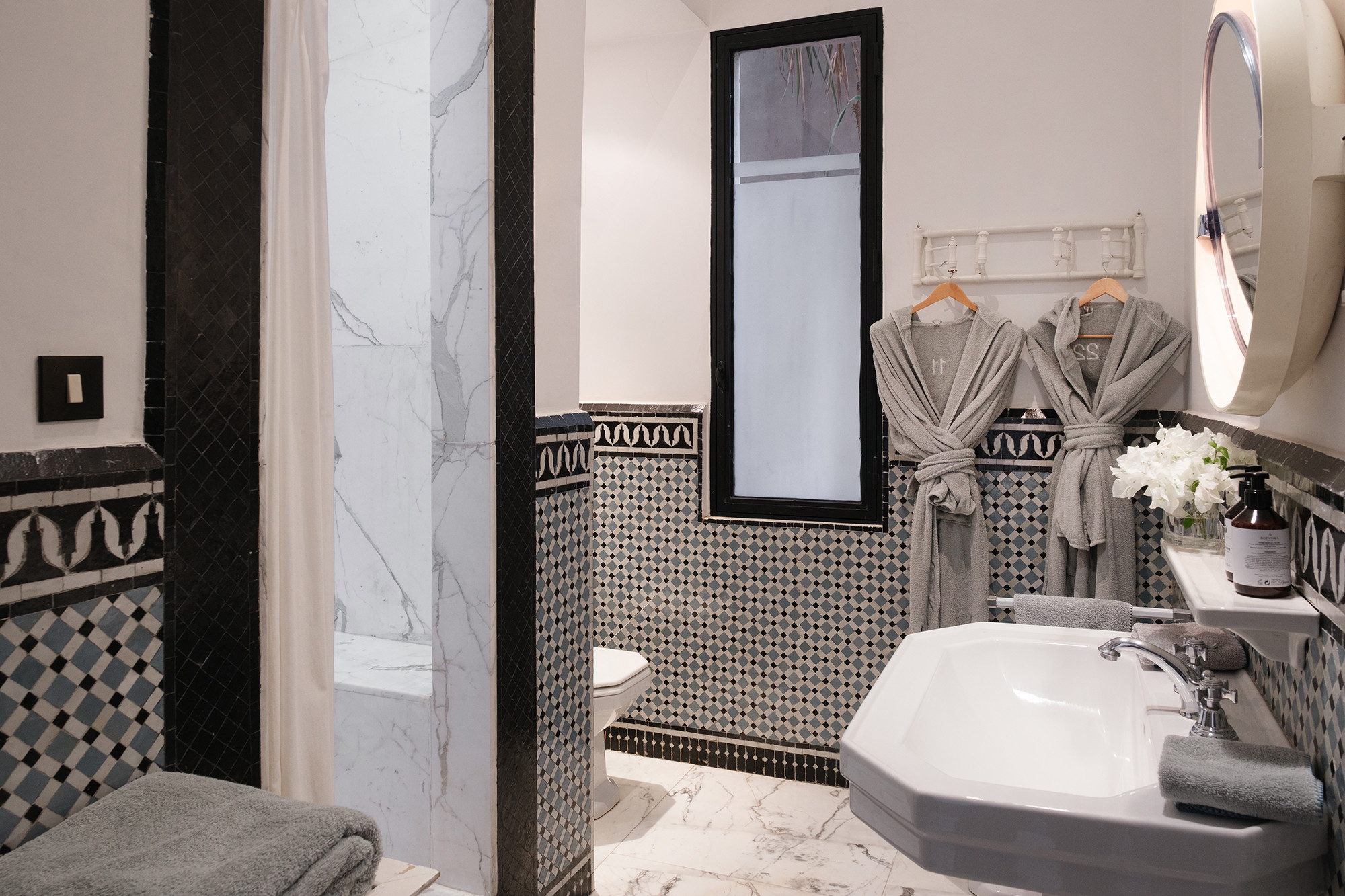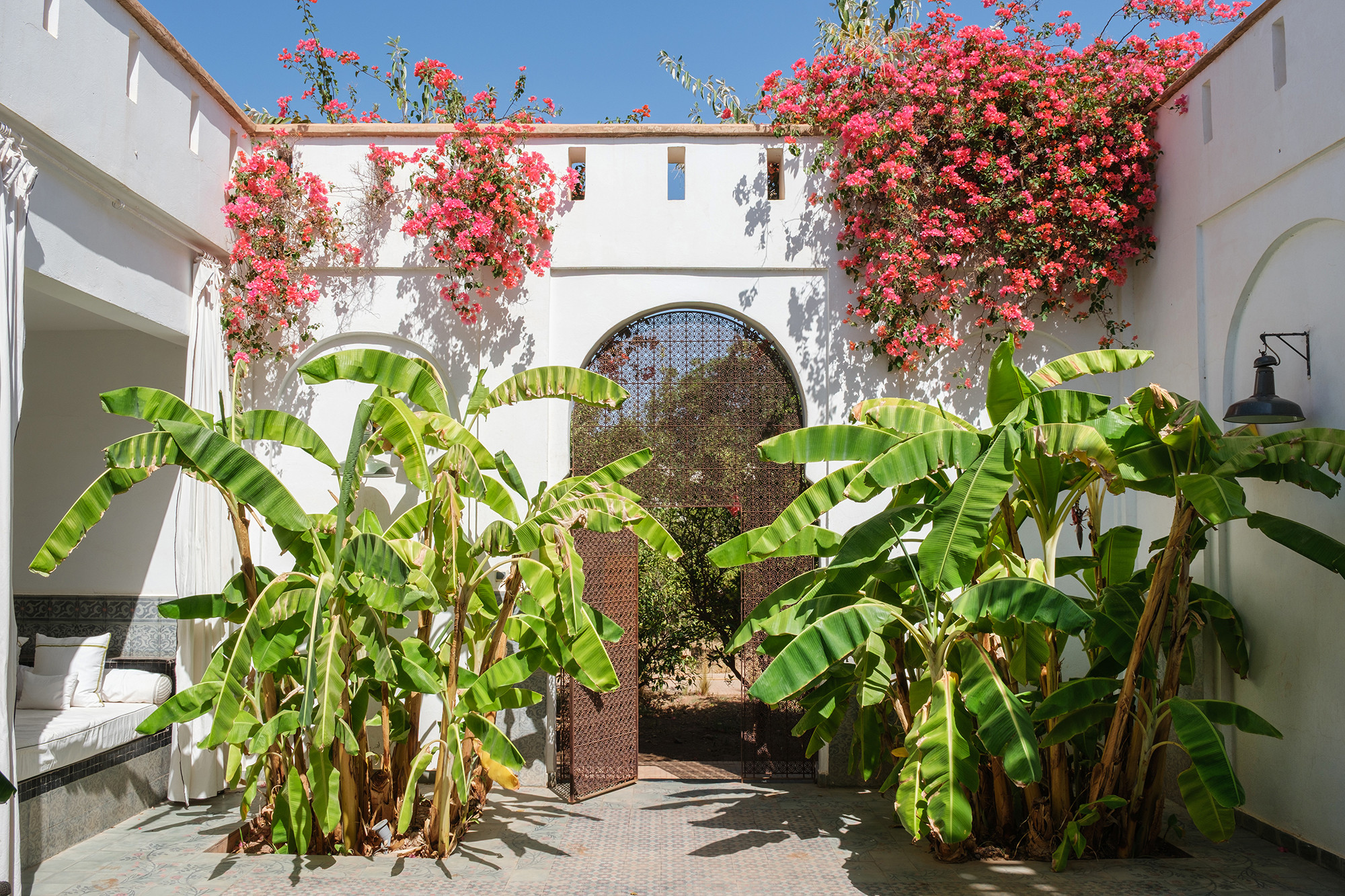 • Signature décorative Corinne Bensimon : alliance de pièces vintage et éditions contemporaines, palette subtile, zelliges, tadelakt et savoir-faire marocain en filigrane.
