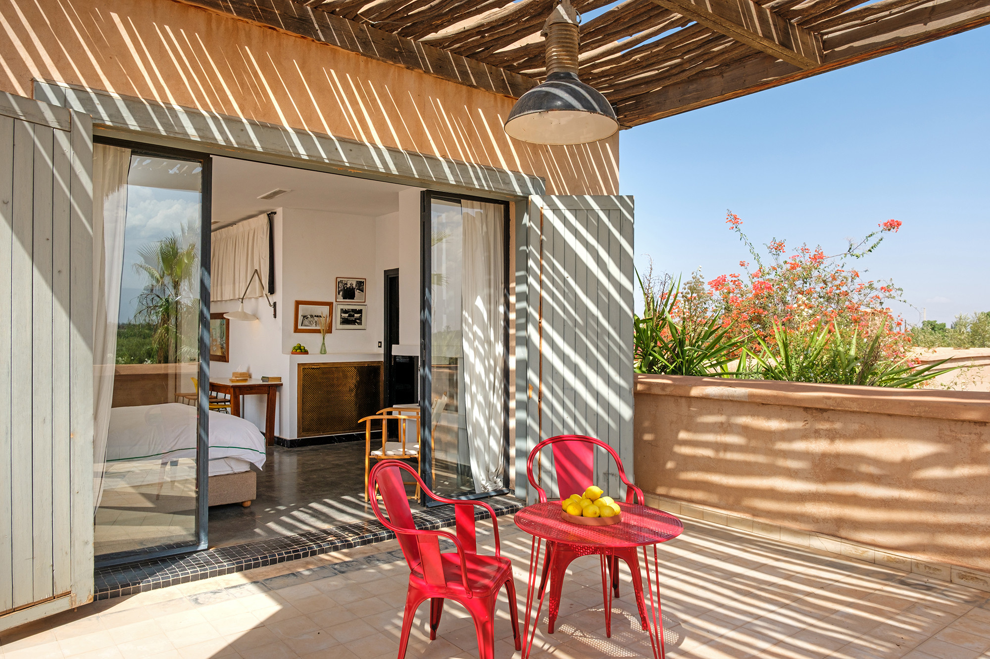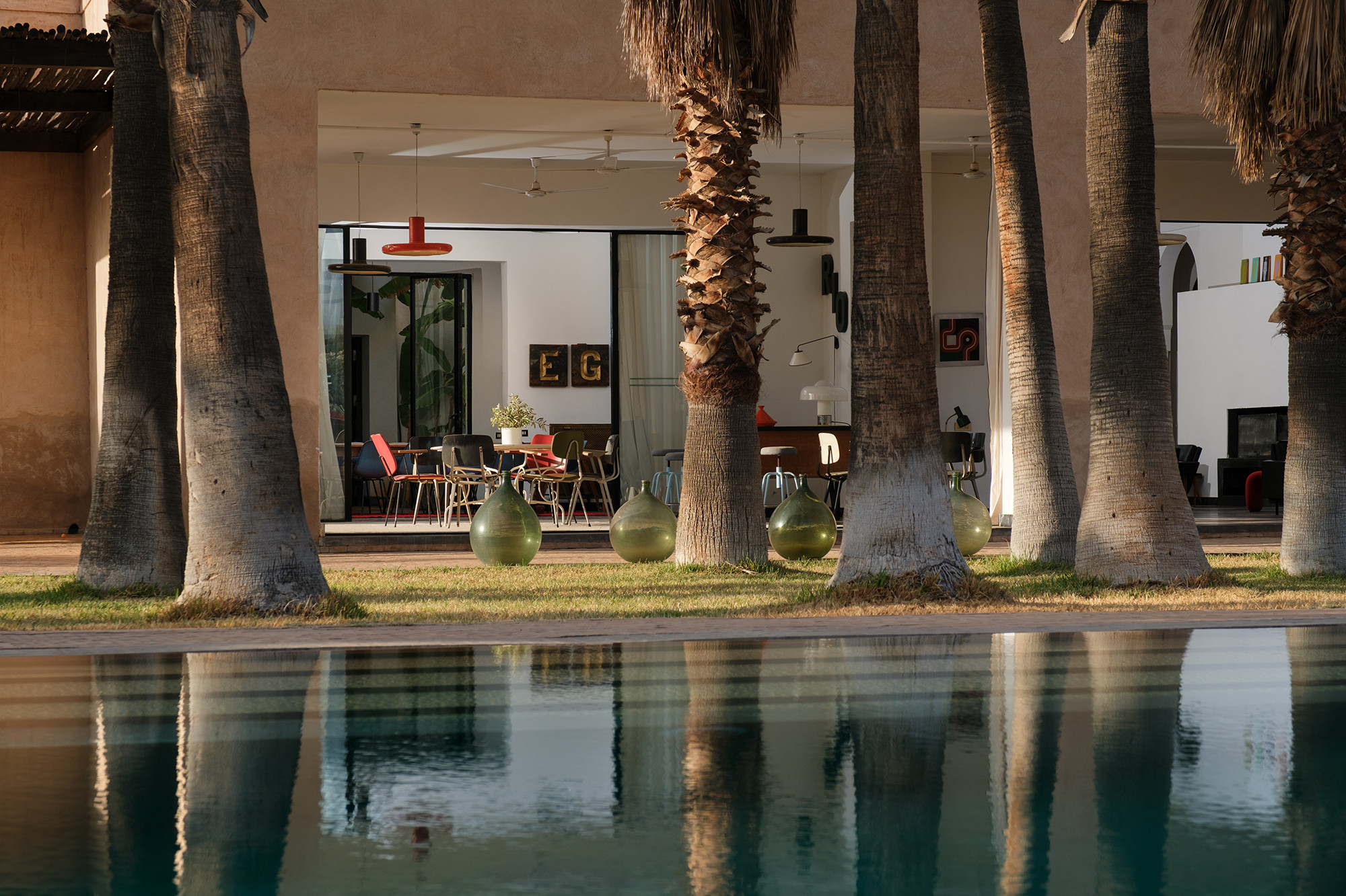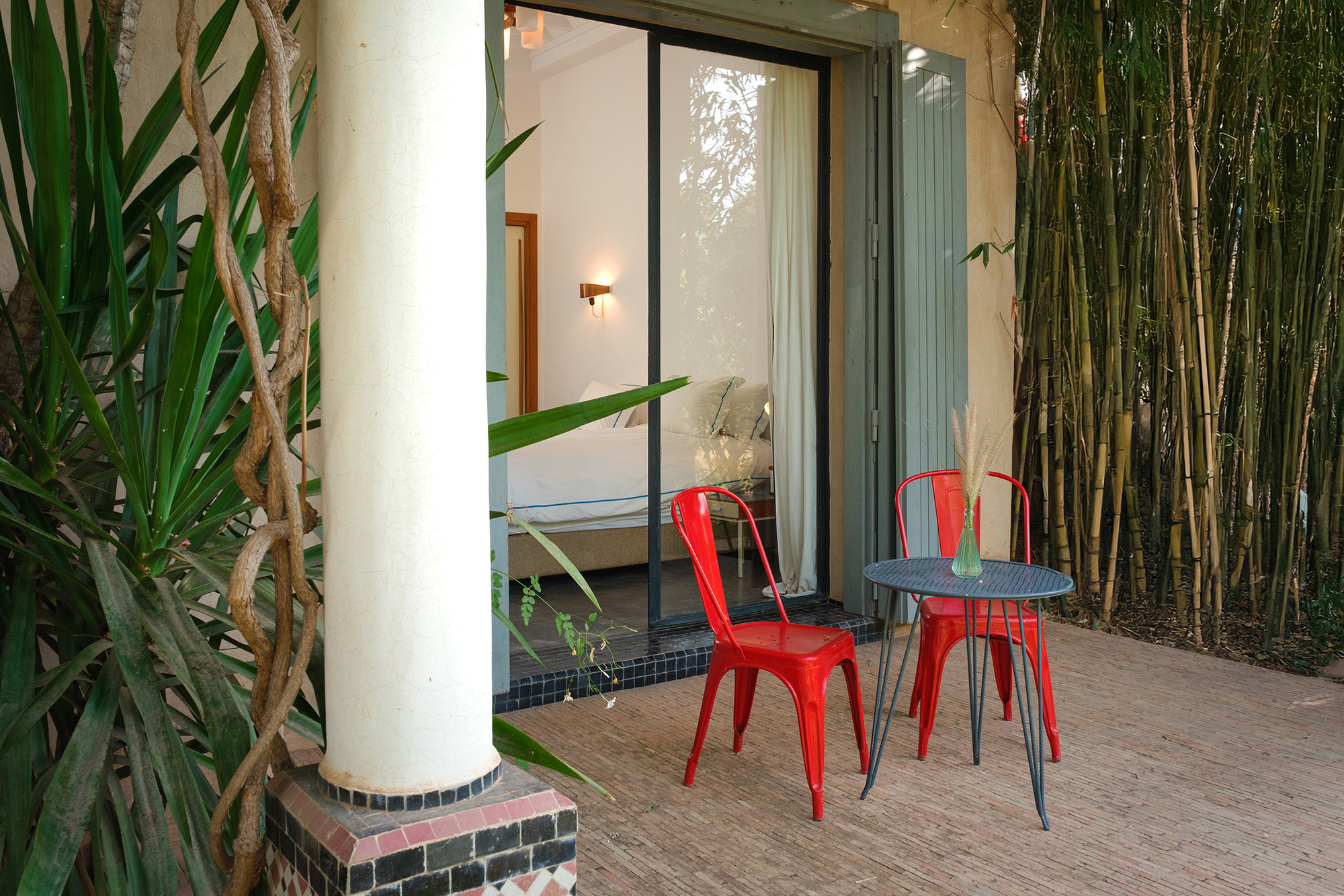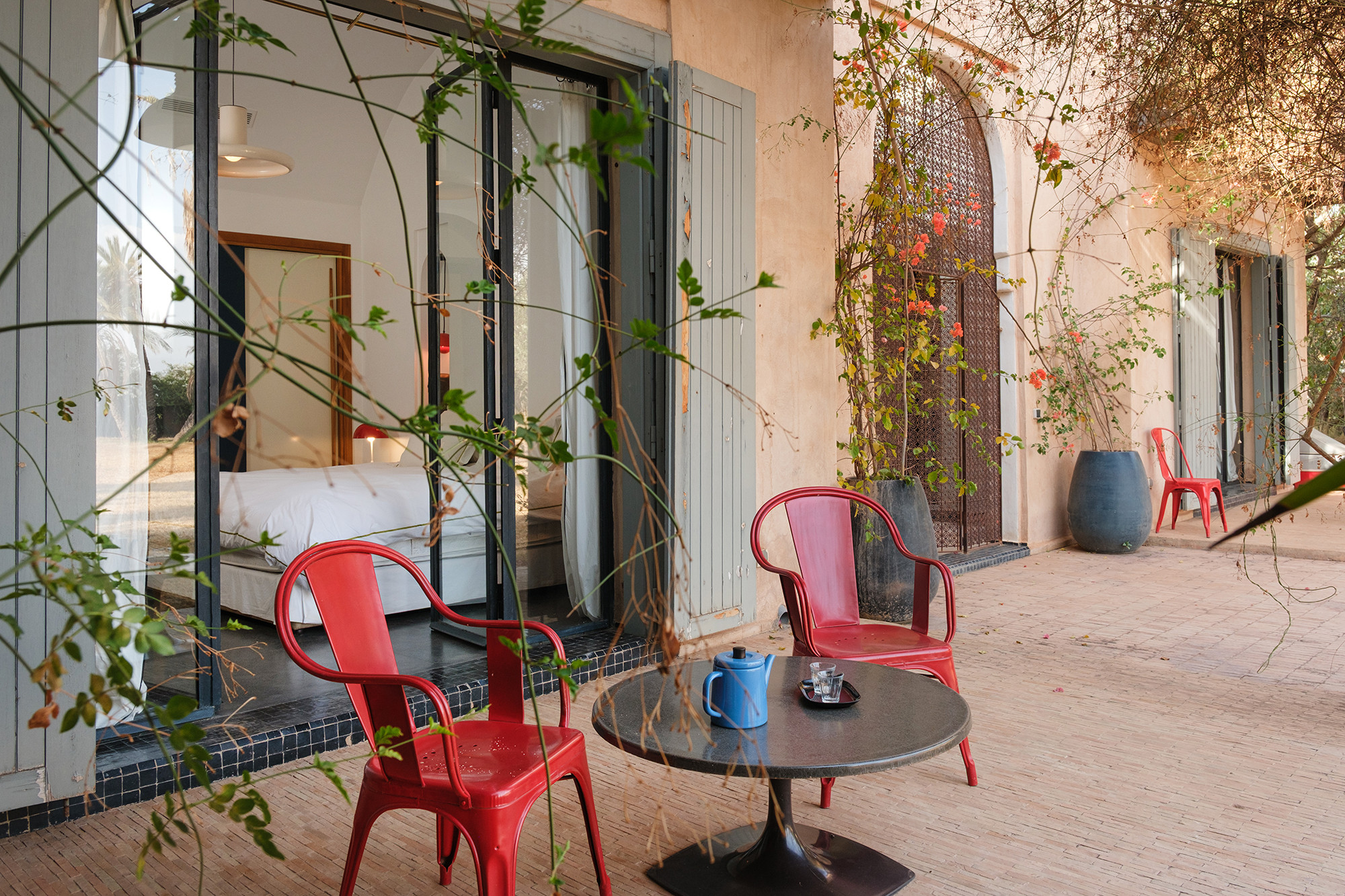 Adressez-vous une parenthèse de style où l’esthétique mène la danse. Dar Tania marie des pièces iconiques du design italien à une mise en scène minutieuse des matières et des couleurs. La décoration révèle un univers sophistiqué sans ostentation, où chaque détail—des textures au mobilier—compose une atmosphère à la fois contemporaine, chaleureuse et résolument marrakchie.