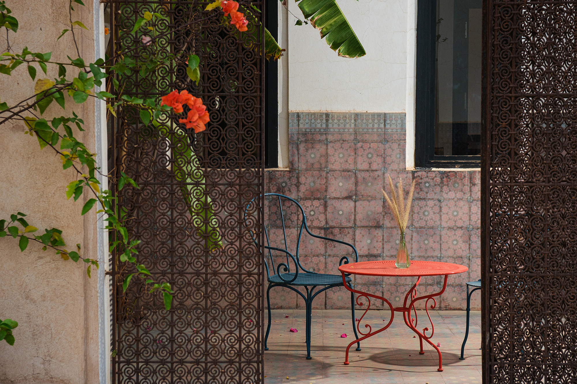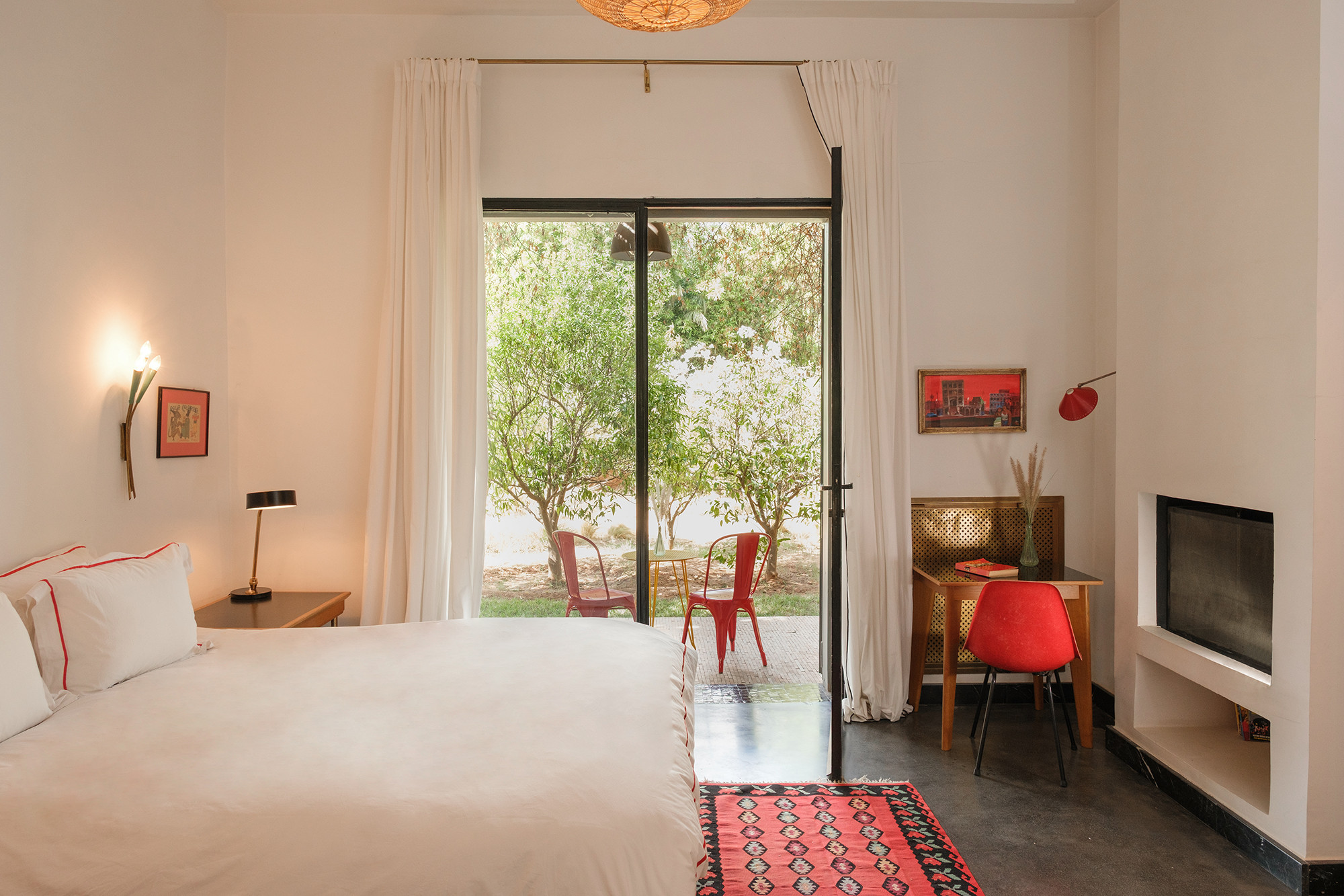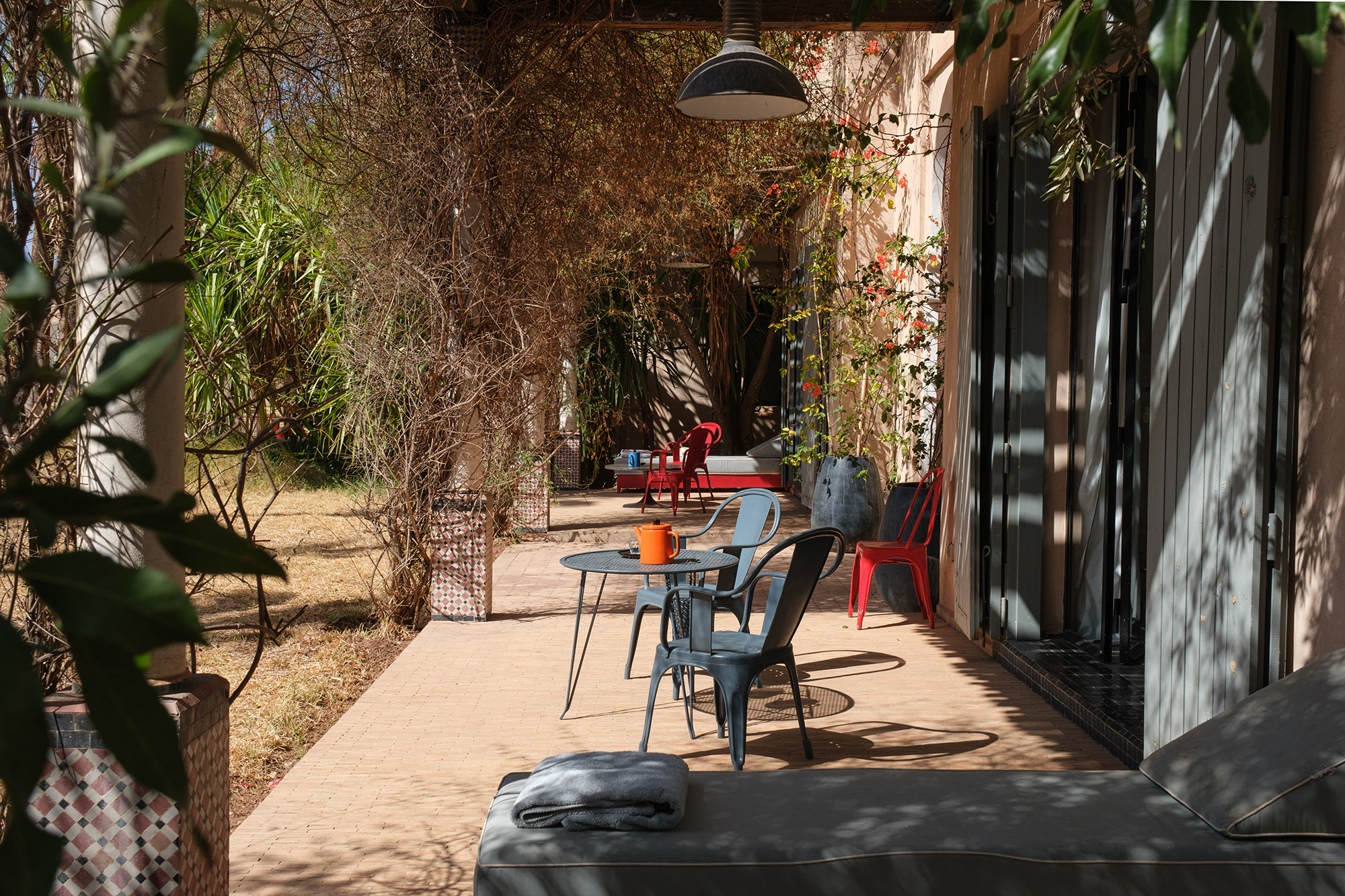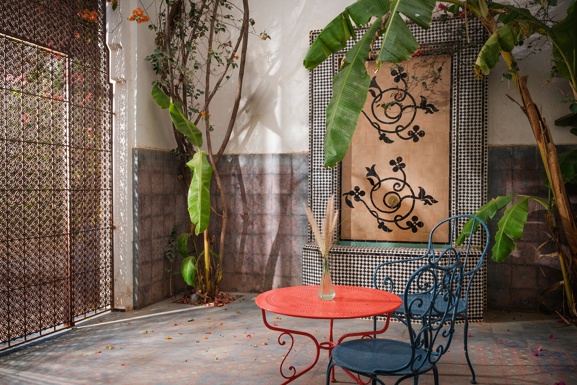 Adressez-vous une parenthèse de style où l’esthétique mène la danse. Dar Tania marie des pièces iconiques du design italien à une mise en scène minutieuse des matières et des couleurs. La décoration révèle un univers sophistiqué sans ostentation, où chaque détail—des textures au mobilier—compose une atmosphère à la fois contemporaine, chaleureuse et résolument marrakchie.
