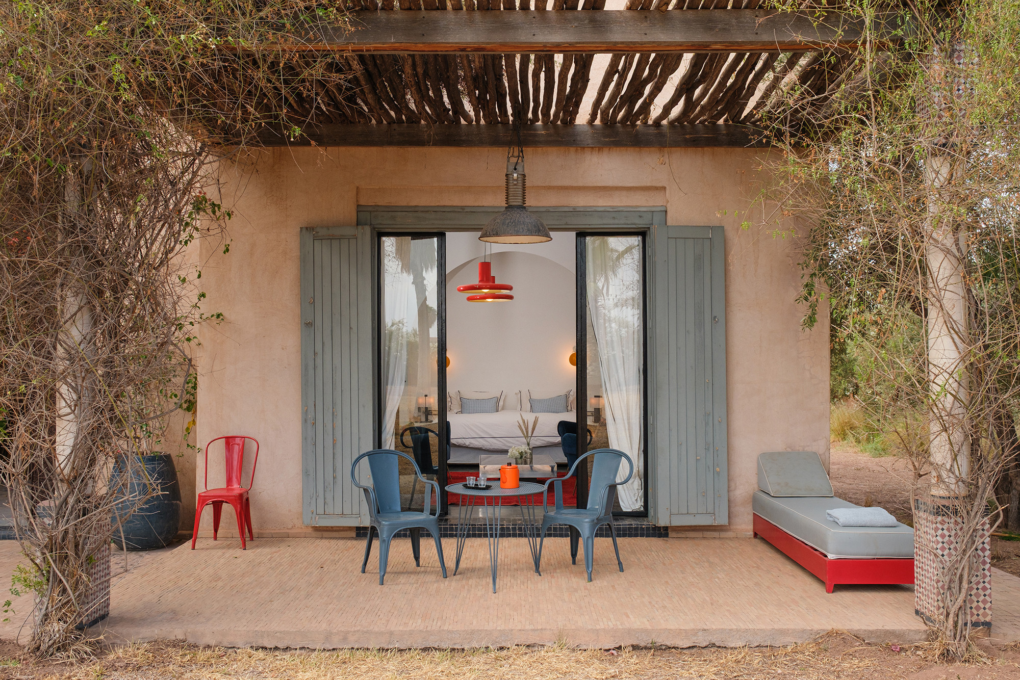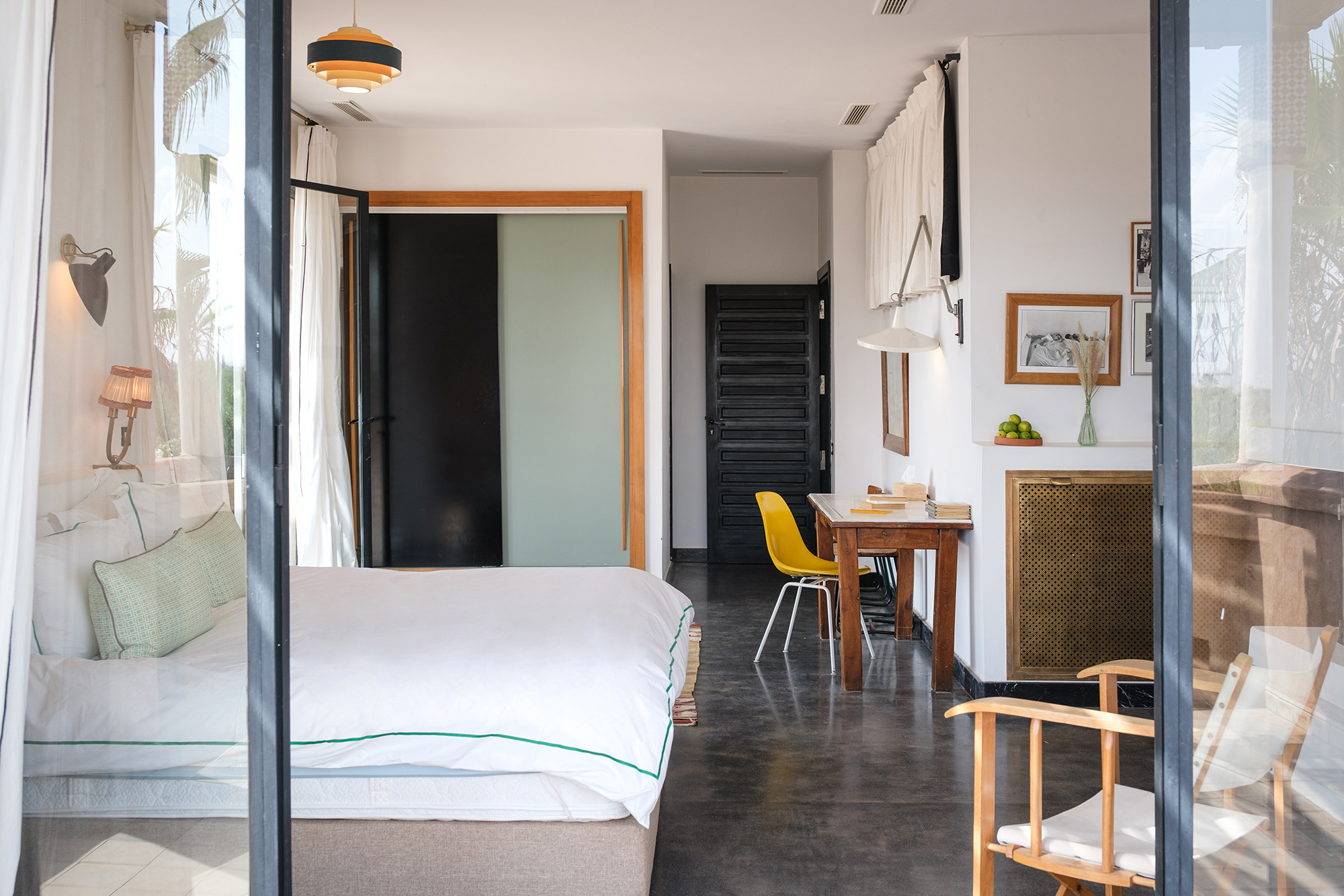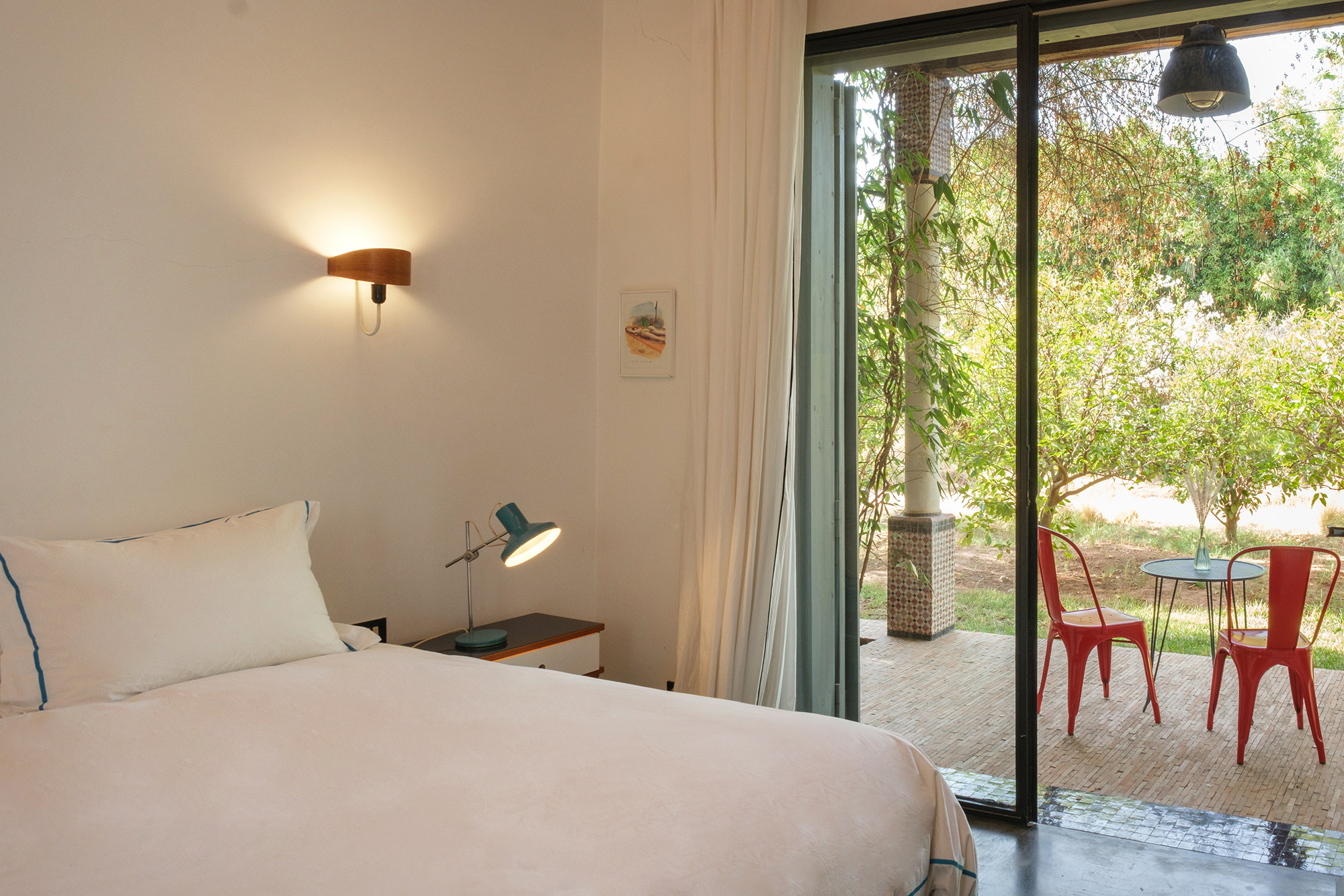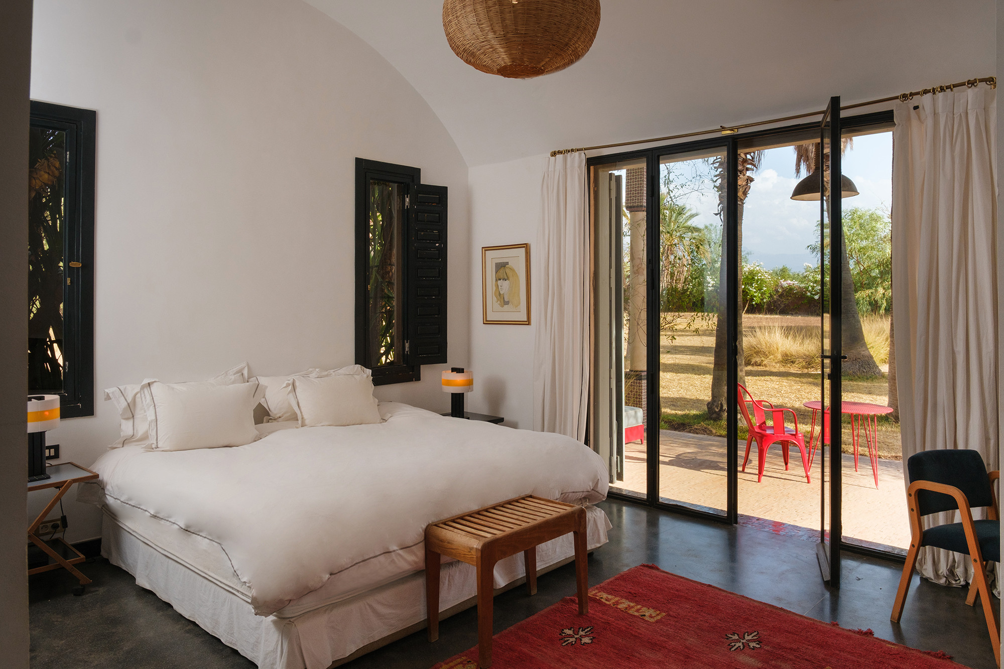 Adressez-vous une parenthèse de style où l’esthétique mène la danse. Dar Tania marie des pièces iconiques du design italien à une mise en scène minutieuse des matières et des couleurs. La décoration révèle un univers sophistiqué sans ostentation, où chaque détail—des textures au mobilier—compose une atmosphère à la fois contemporaine, chaleureuse et résolument marrakchie.