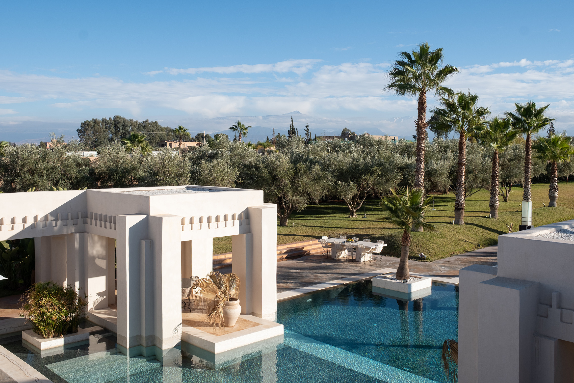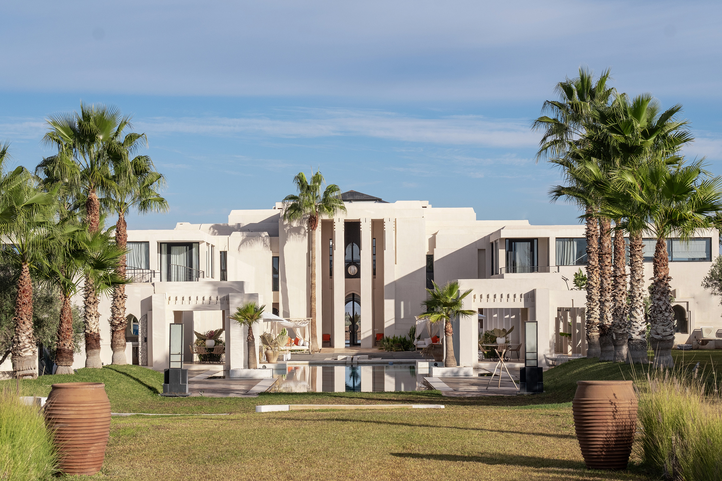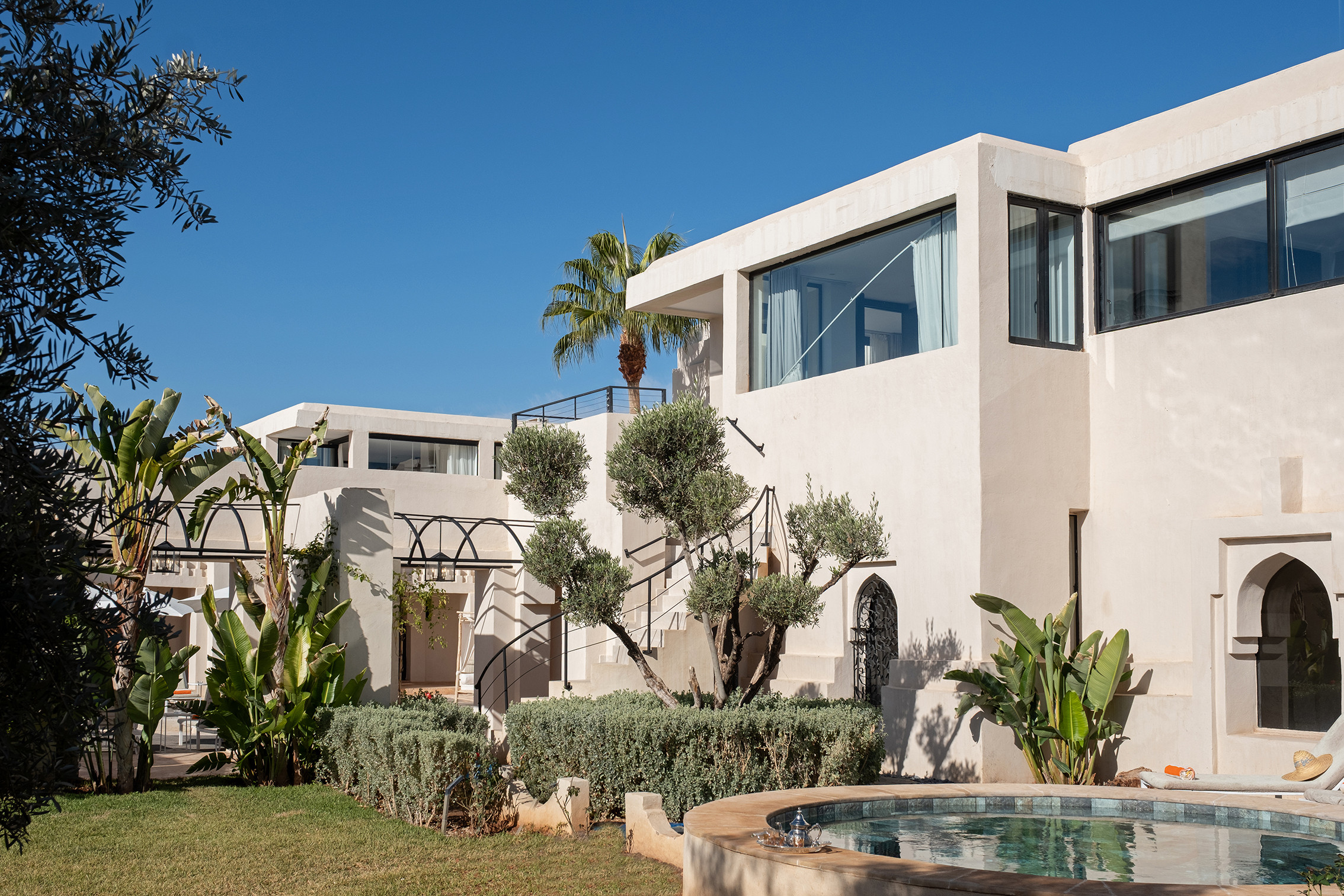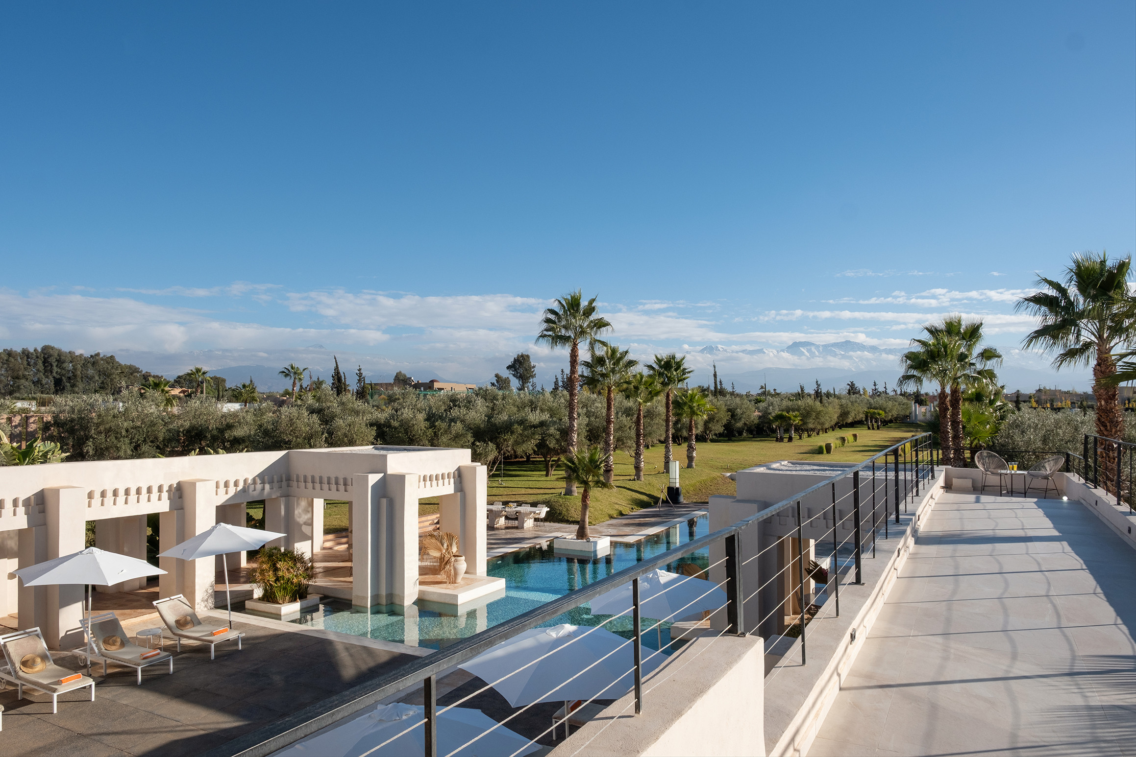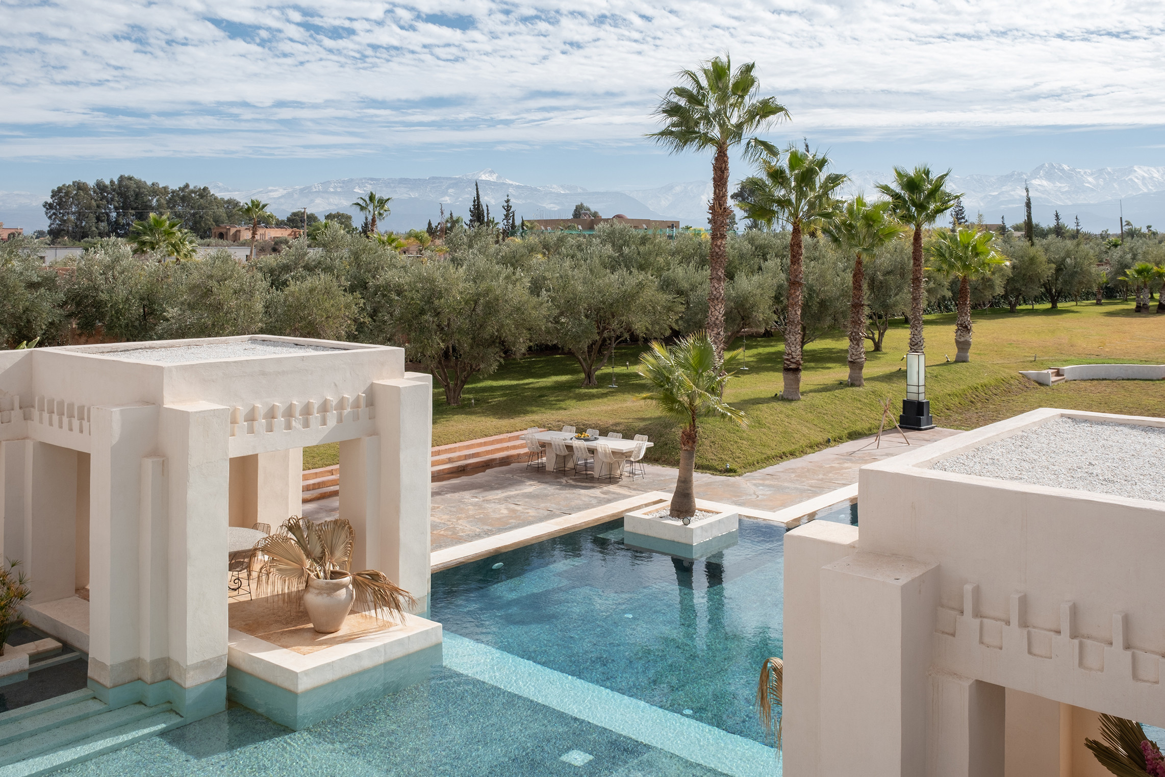 Villa d’architecte unique à Marrakech, inspirée par l’univers de Frank Lloyd Wright, avec 9 chambres, immense jardin, piscine de 12 x 20 m et grand jacuzzi extérieur. Idéale pour familles et groupes, jusqu’à 18 adultes et 4 à 6 enfants pour un supplèment, à environ 25 minutes de la médina.