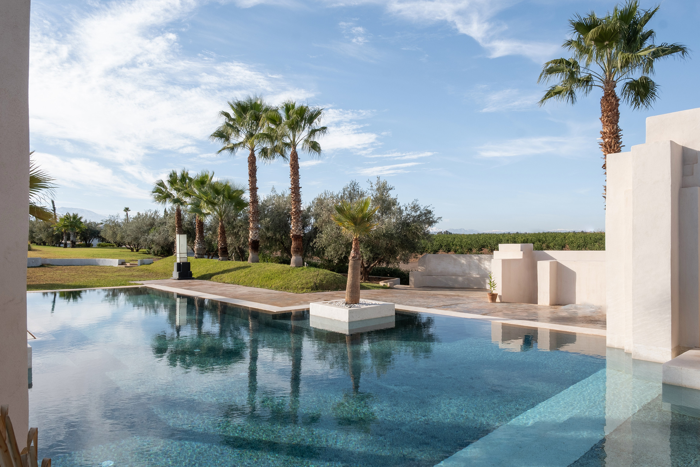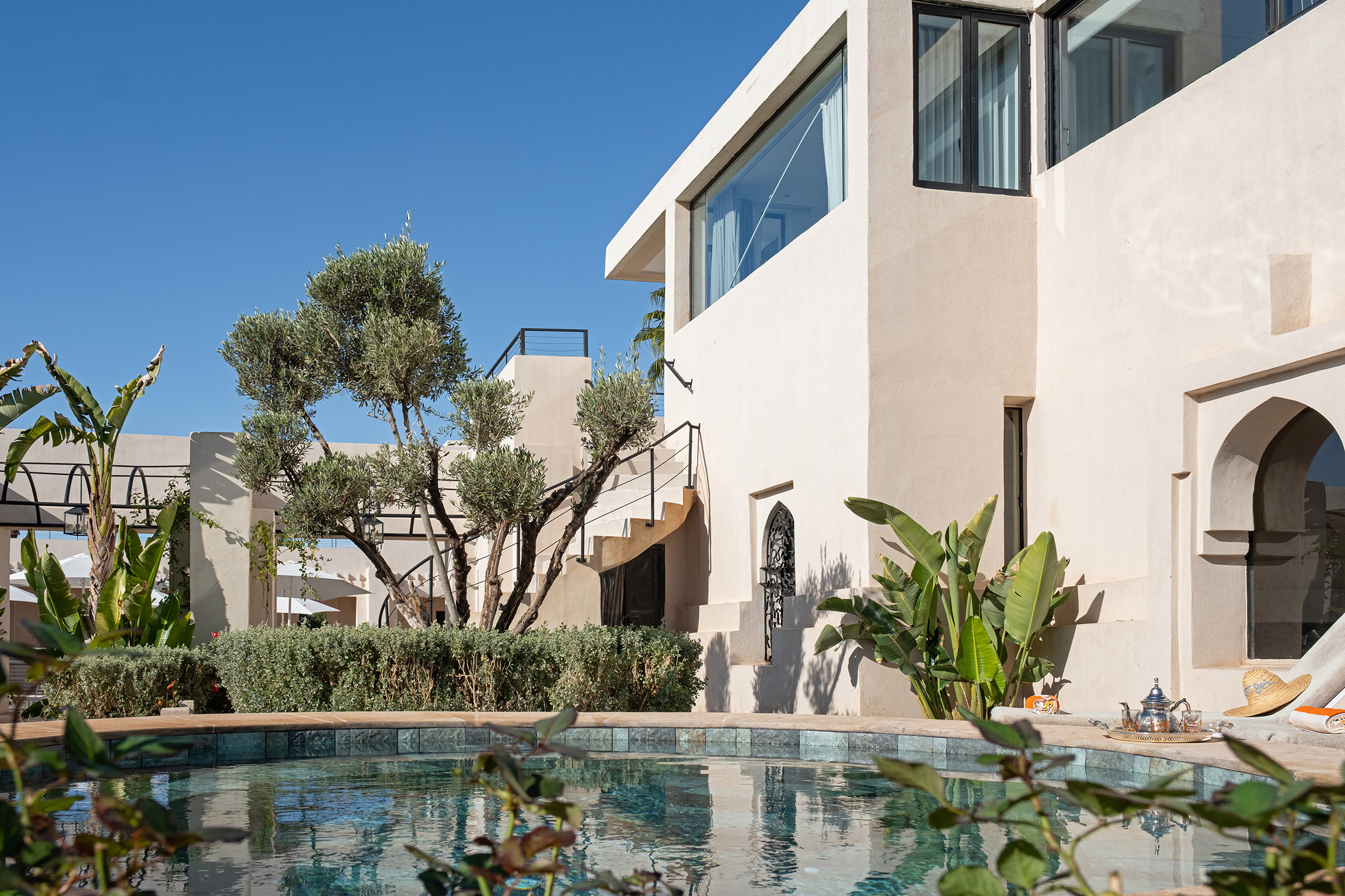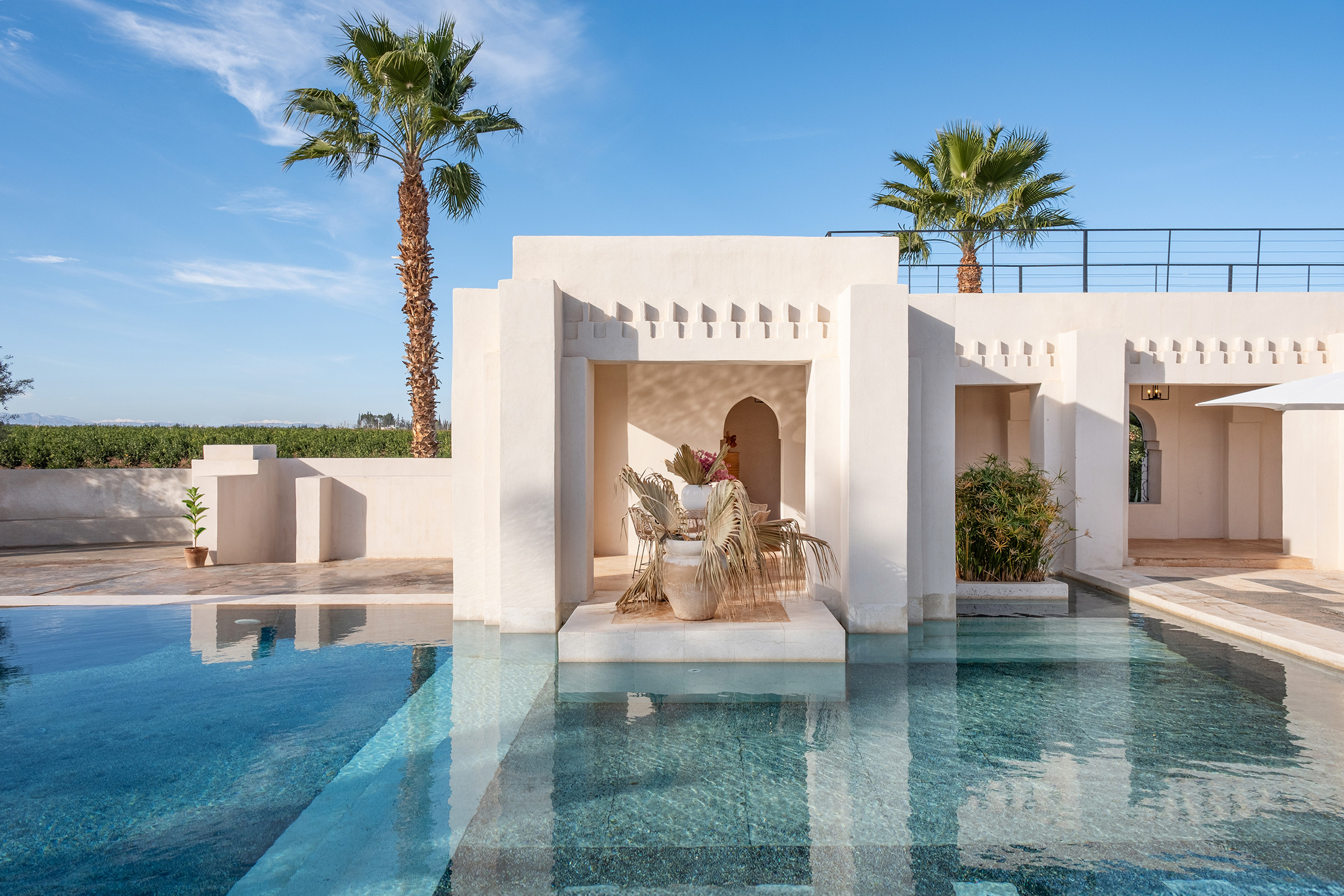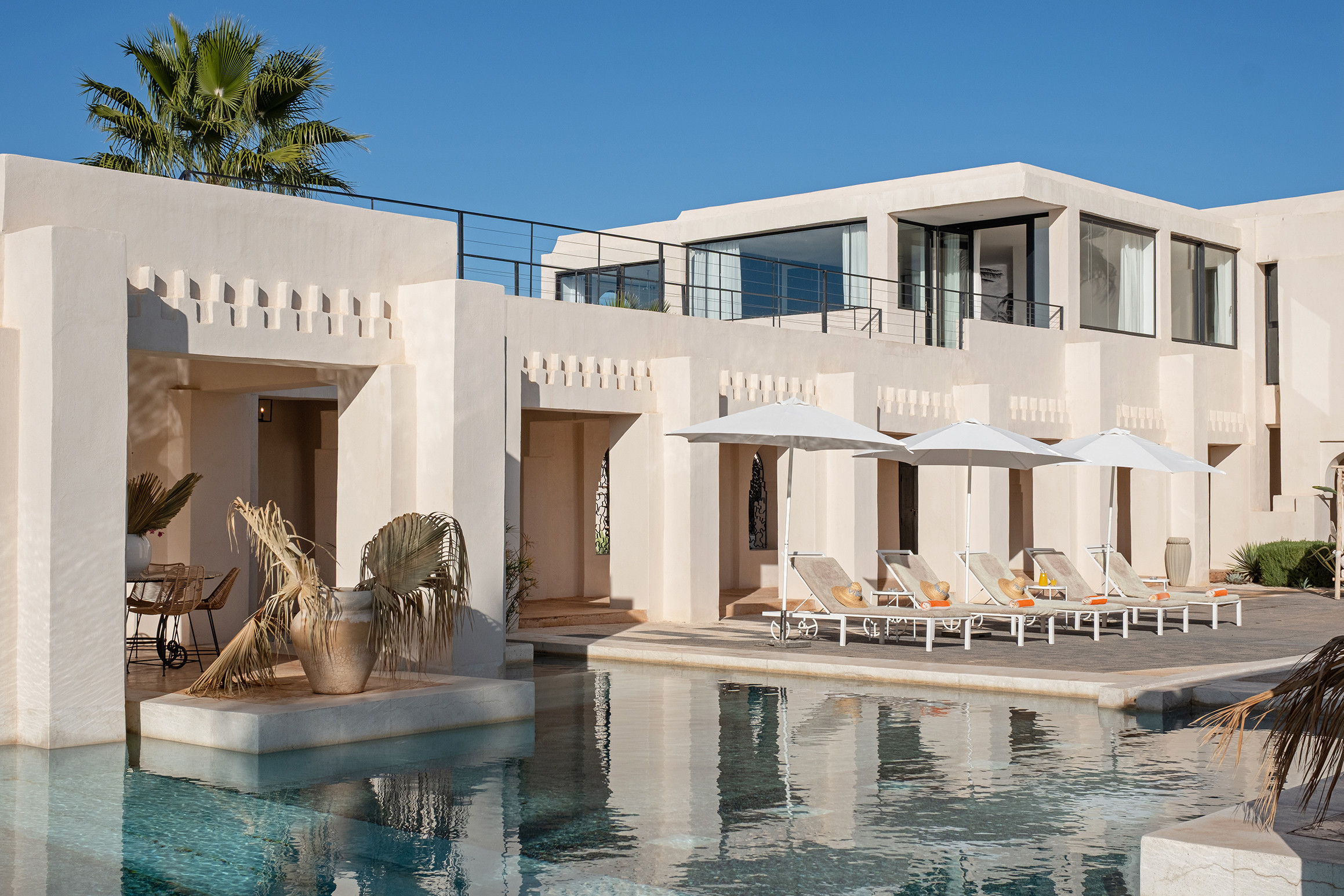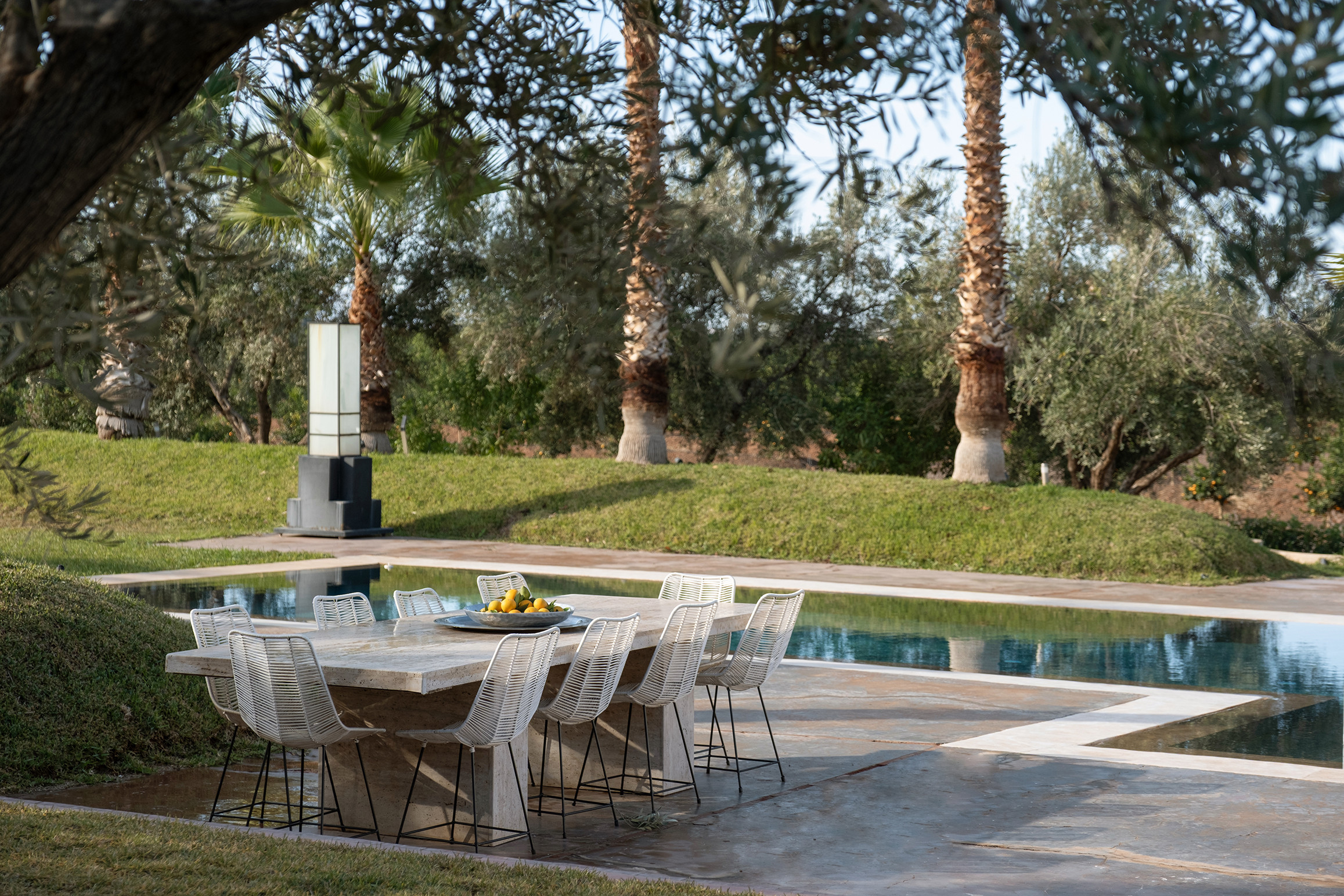Villa d’architecte unique à Marrakech, inspirée par l’univers de Frank Lloyd Wright, avec 9 chambres, immense jardin, piscine de 12 x 20 m et grand jacuzzi extérieur. Idéale pour familles et groupes, jusqu’à 18 adultes et 4 à 6 enfants pour un supplèment, à environ 25 minutes de la médina.
