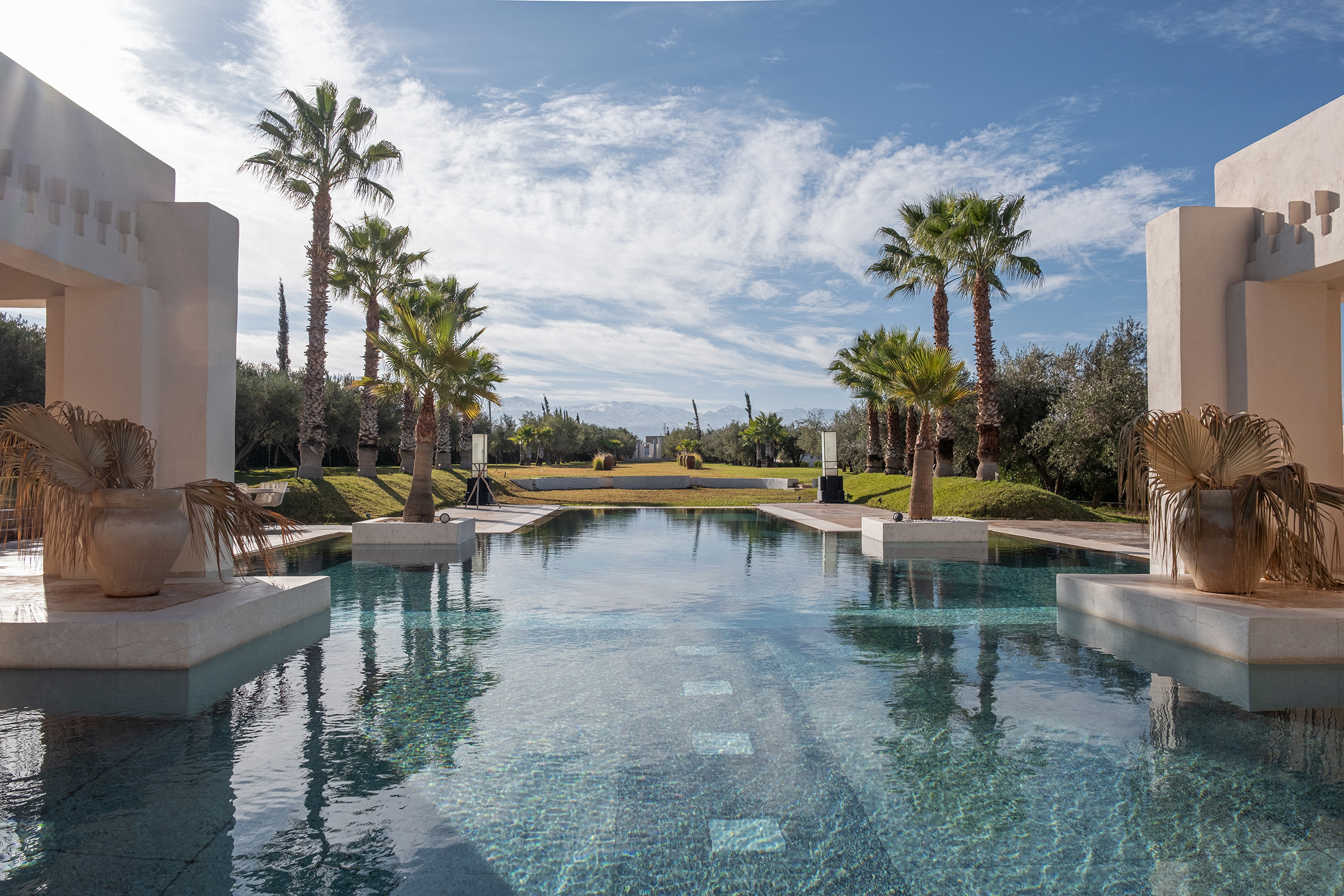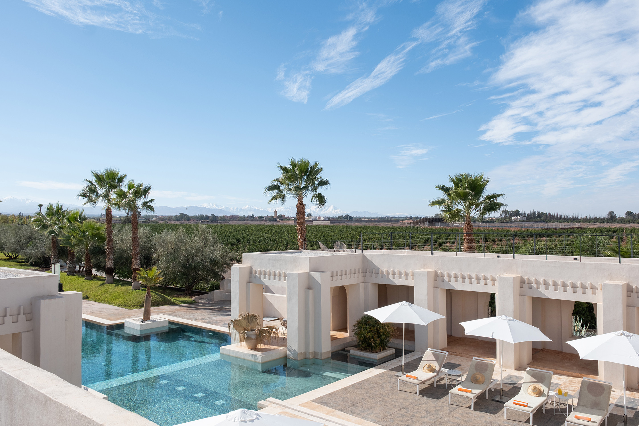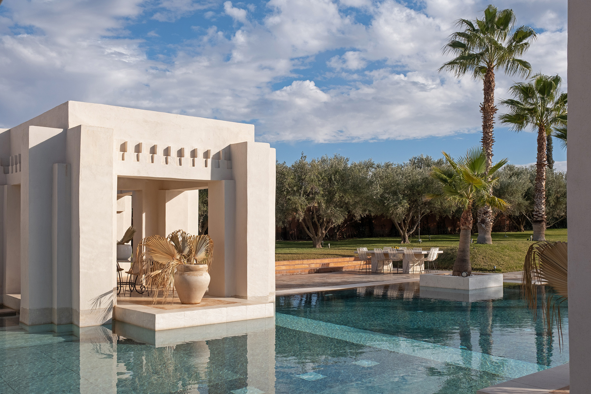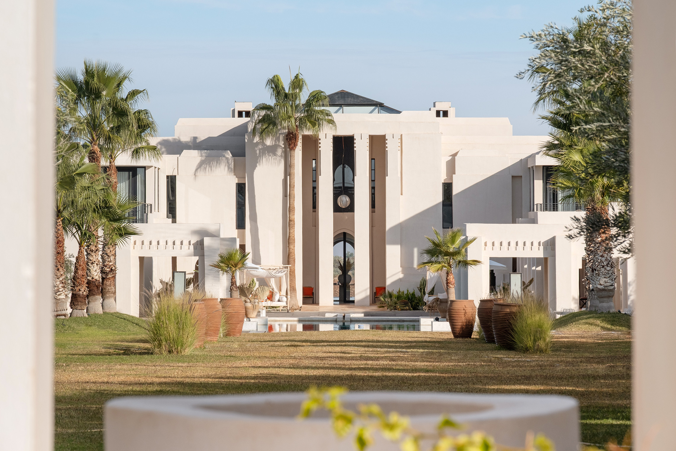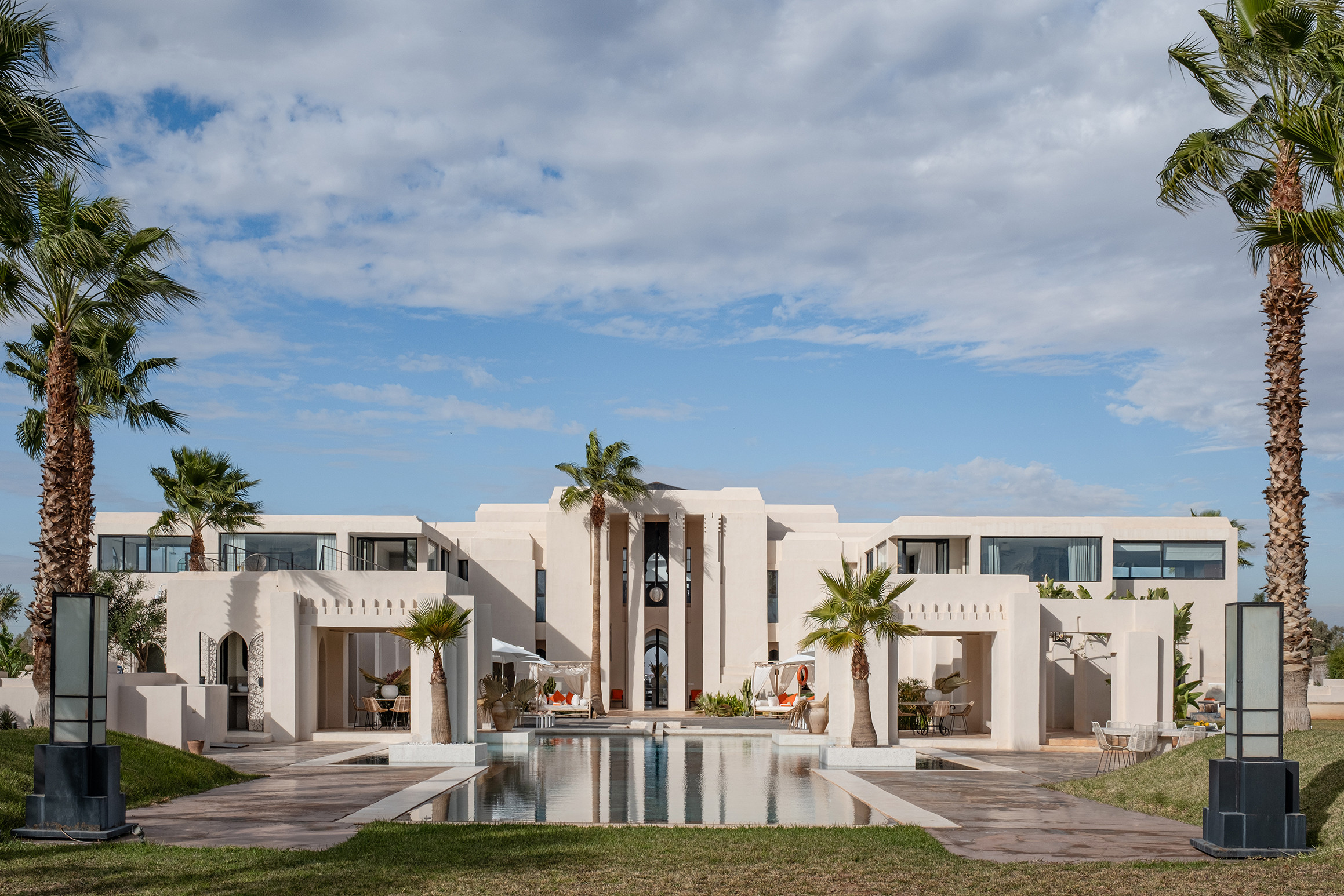 Villa d’architecte unique à Marrakech, inspirée par l’univers de Frank Lloyd Wright, avec 9 chambres, immense jardin, piscine de 12 x 20 m et grand jacuzzi extérieur. Idéale pour familles et groupes, jusqu’à 18 adultes et 4 à 6 enfants pour un supplèment, à environ 25 minutes de la médina.