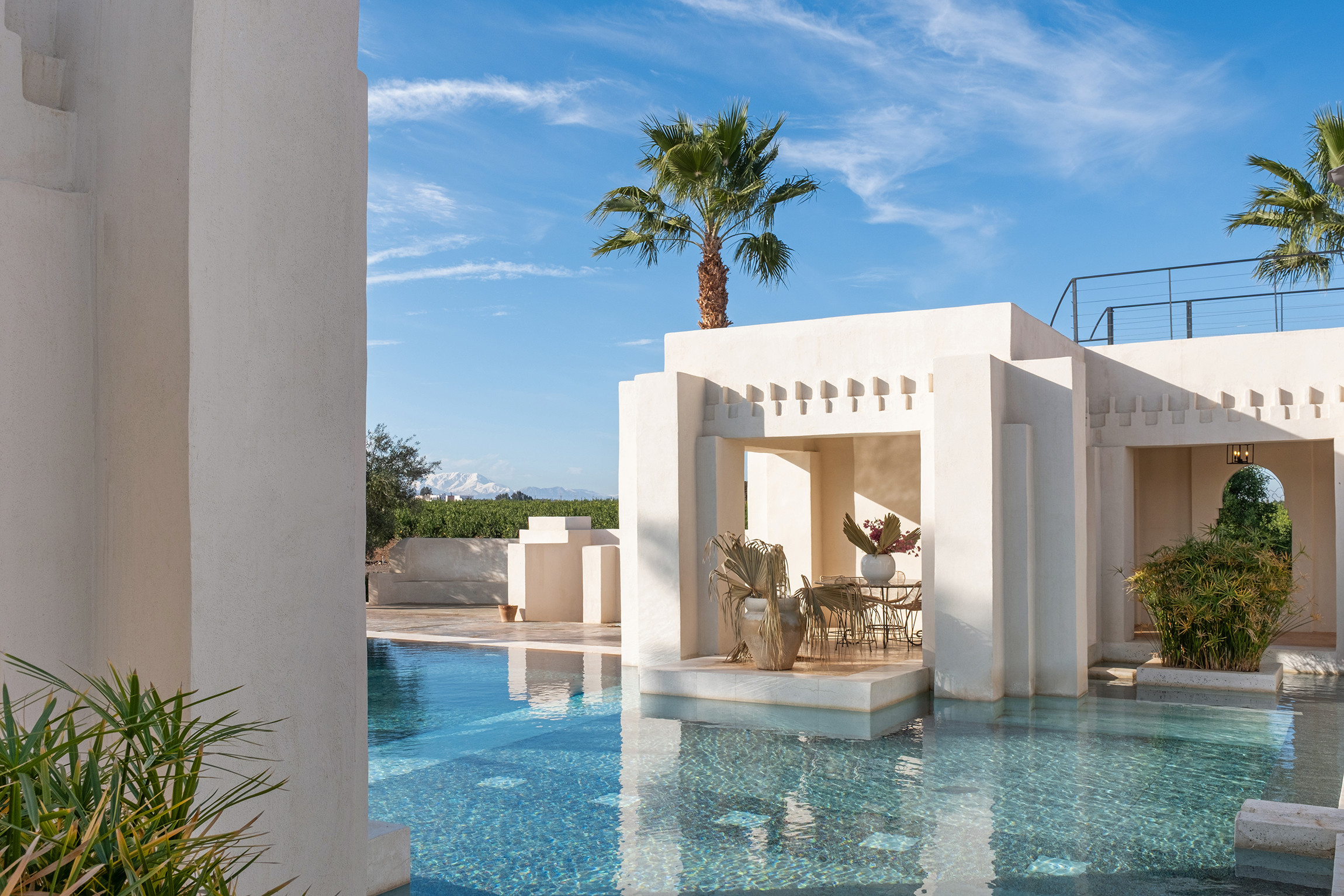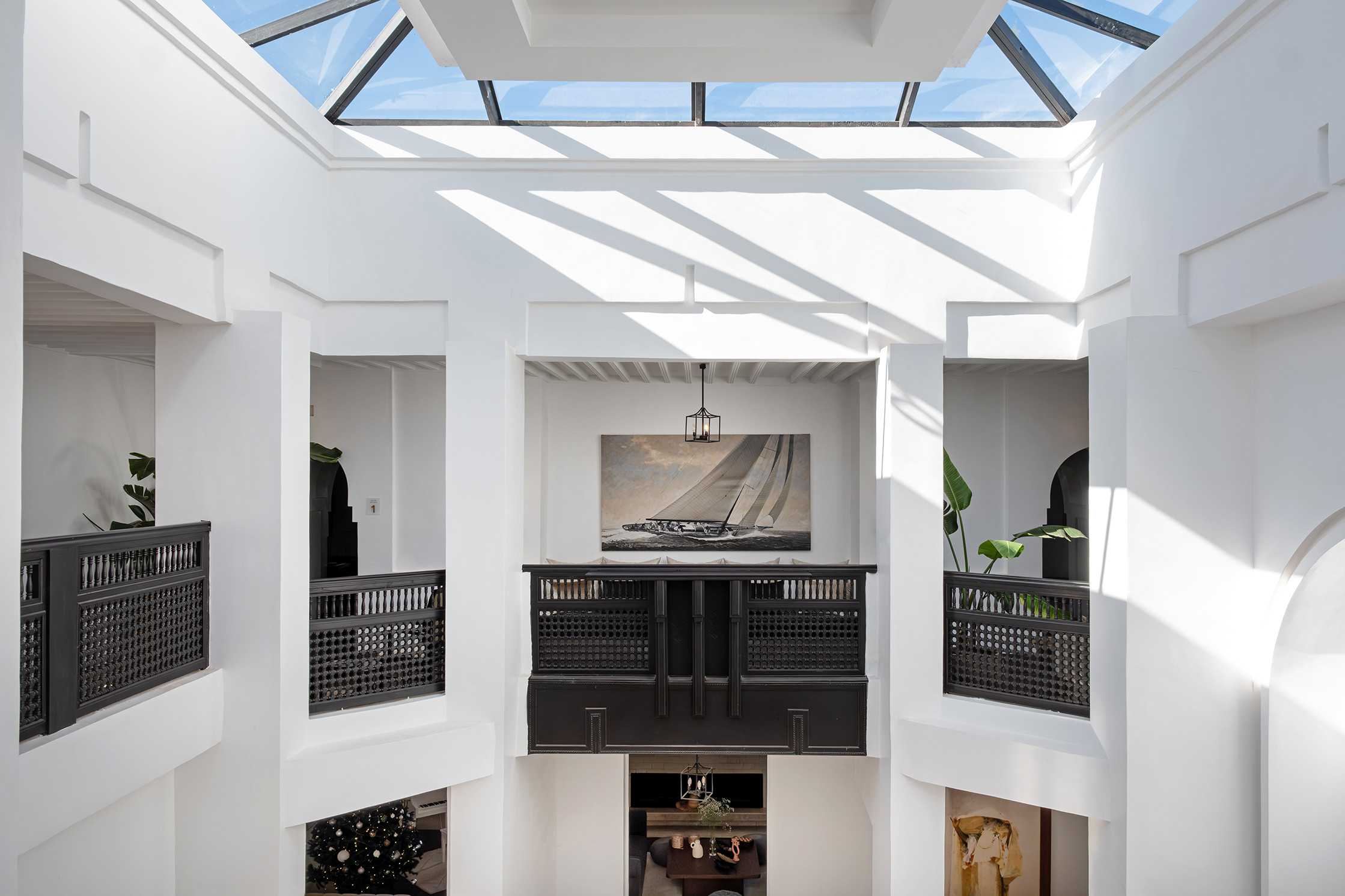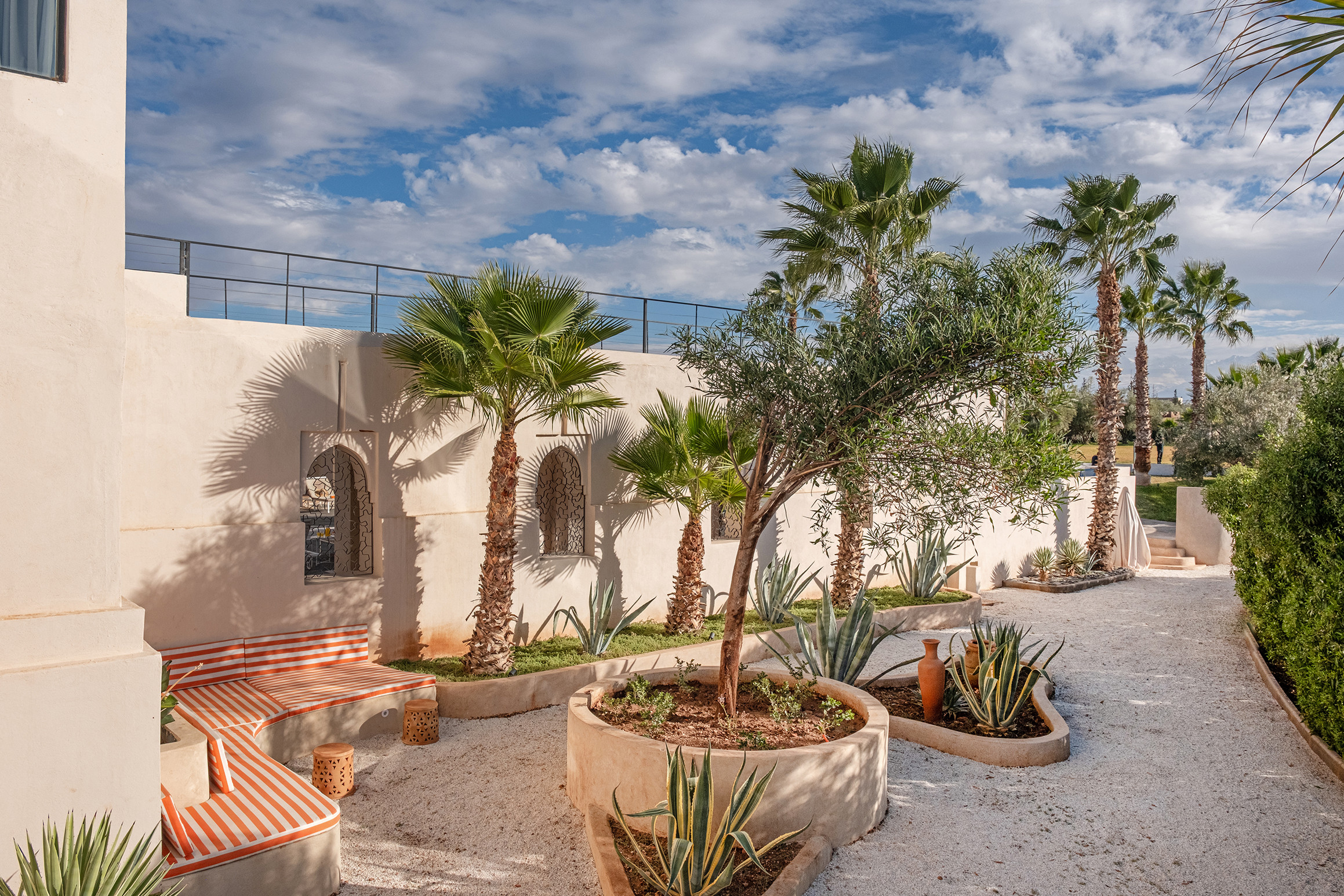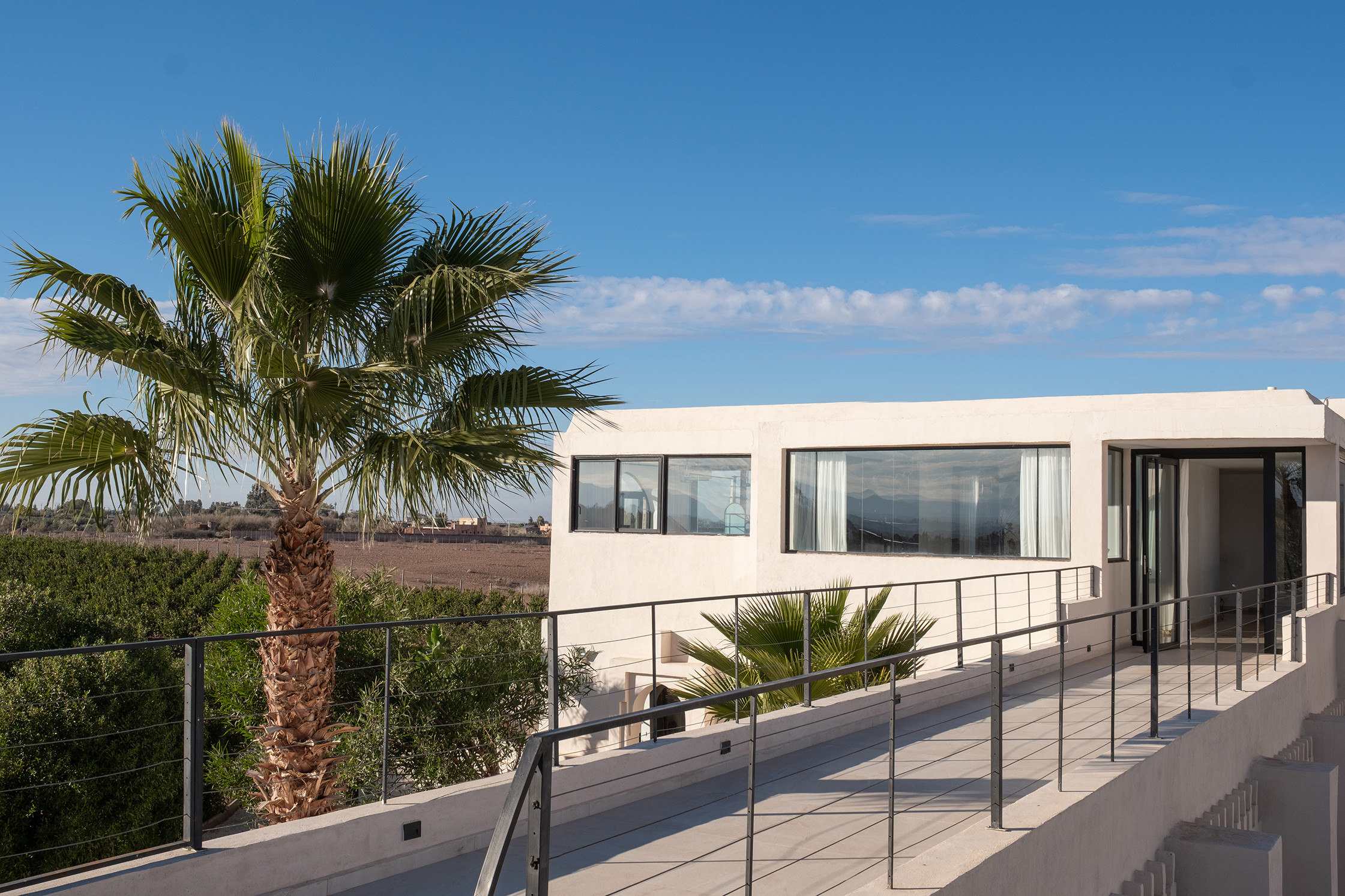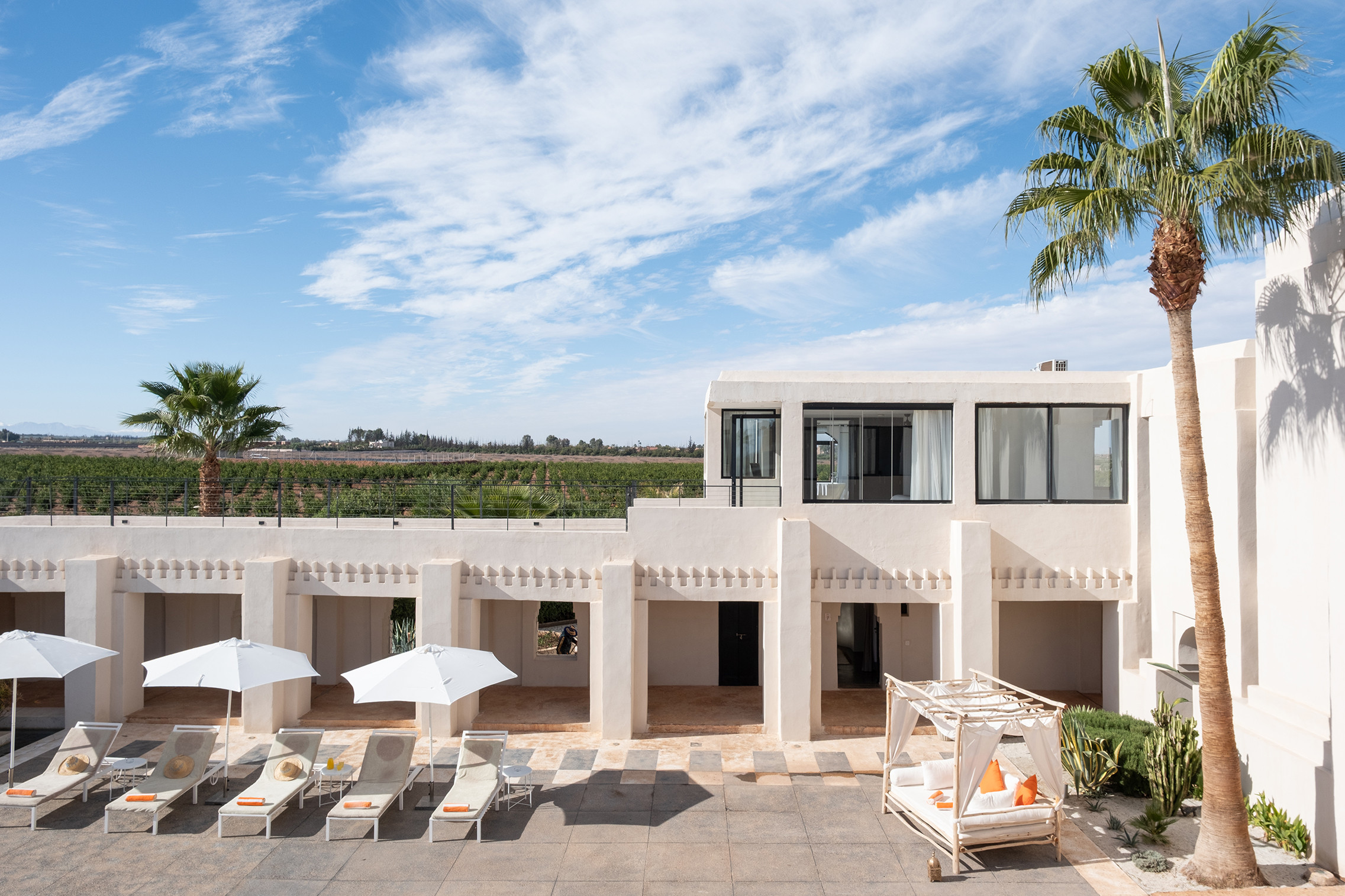 Villa d’architecte unique à Marrakech, inspirée par l’univers de Frank Lloyd Wright, avec 9 chambres, immense jardin, piscine de 12 x 20 m et grand jacuzzi extérieur. Idéale pour familles et groupes, jusqu’à 18 adultes et 4 à 6 enfants pour un supplèment, à environ 25 minutes de la médina.