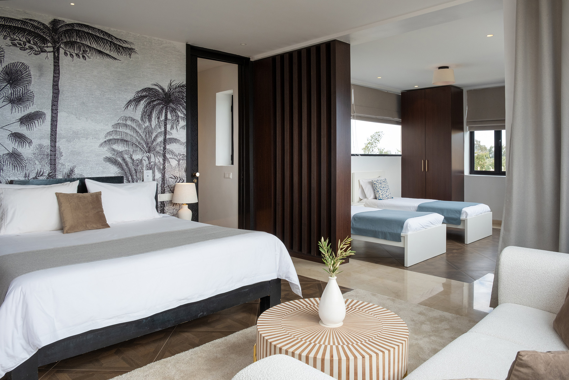 Deux grandes suites parentales disposent d’une double vasque, d’une baignoire et d’un dressing. Elles peuvent chacune accueillir deux enfants supplémentaires en lits simples ou canapé-lit, ce qui est idéal pour les familles qui souhaitent rester ensemble. De plus, deux chambres au rez-de-chaussée peuvent recevoir des lits simples additionnels sur demande, afin d’adapter la configuration à votre groupe.