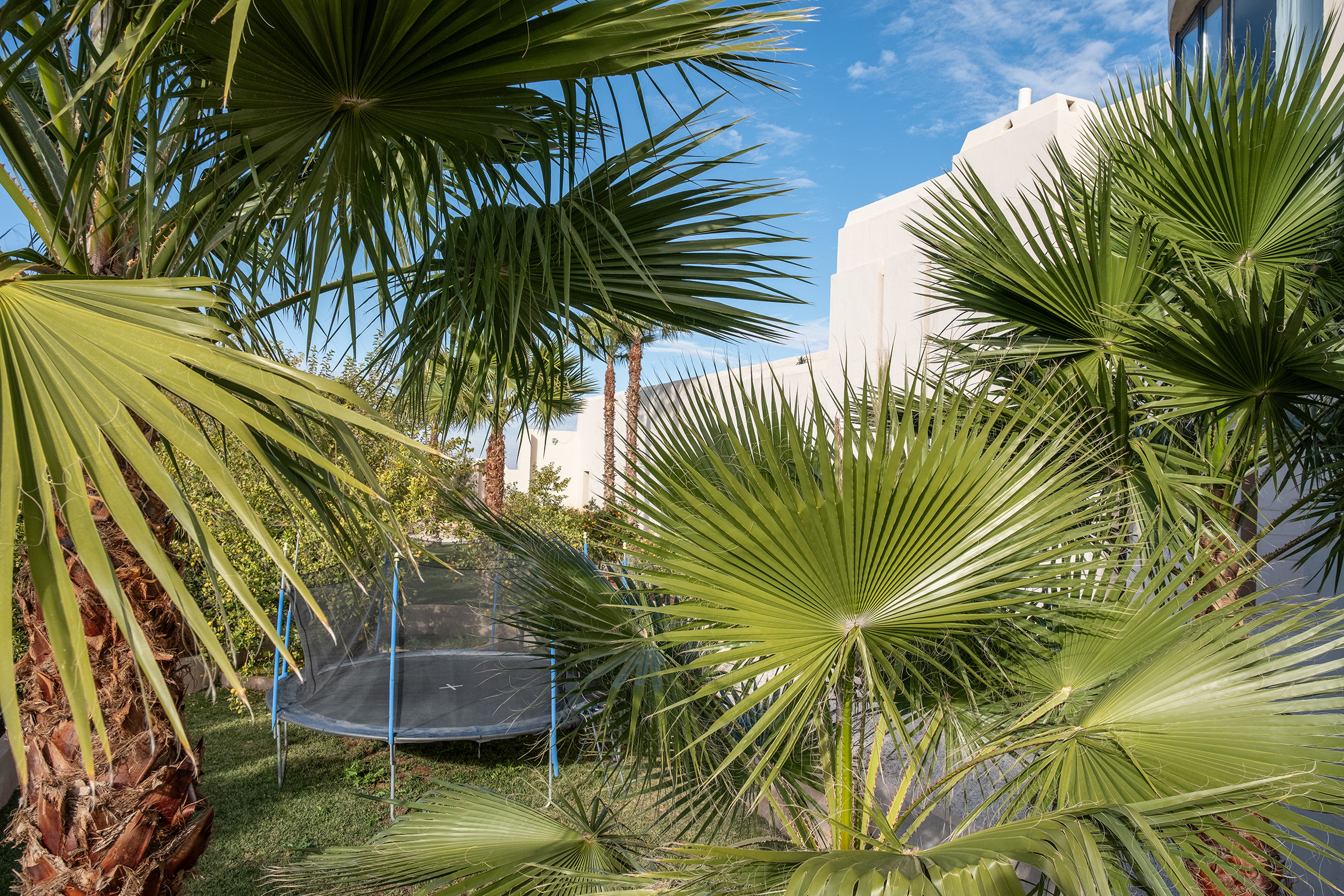 Pour les moments ludiques, vous trouverez également une table de ping-pong, un trampoline et plusieurs installations dans les arbres, pensées pour les enfants. Sur demande, la façade de la villa se transforme en écran pour organiser des projections en plein air et créer de véritables soirées cinéma sous les étoiles.