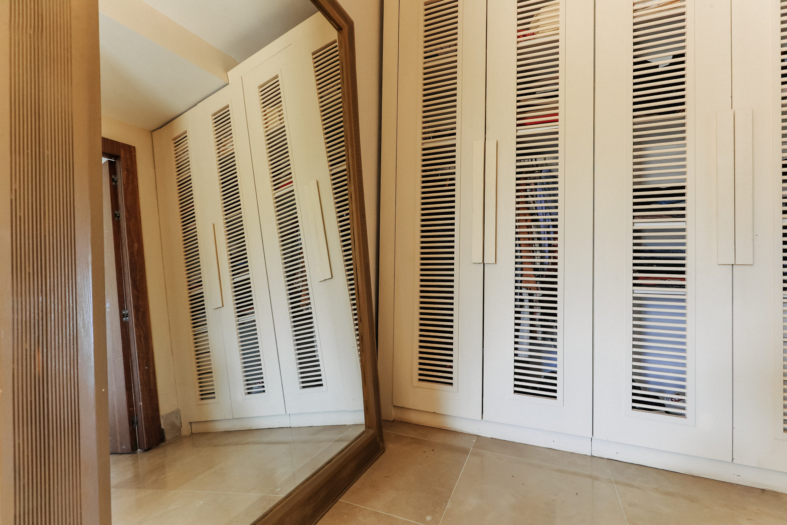 • 6 chambres, chacune avec lit kingsize et salle de bain privative, pensées comme des suites d’hôtel, rangements généreux et beaux luminaires.