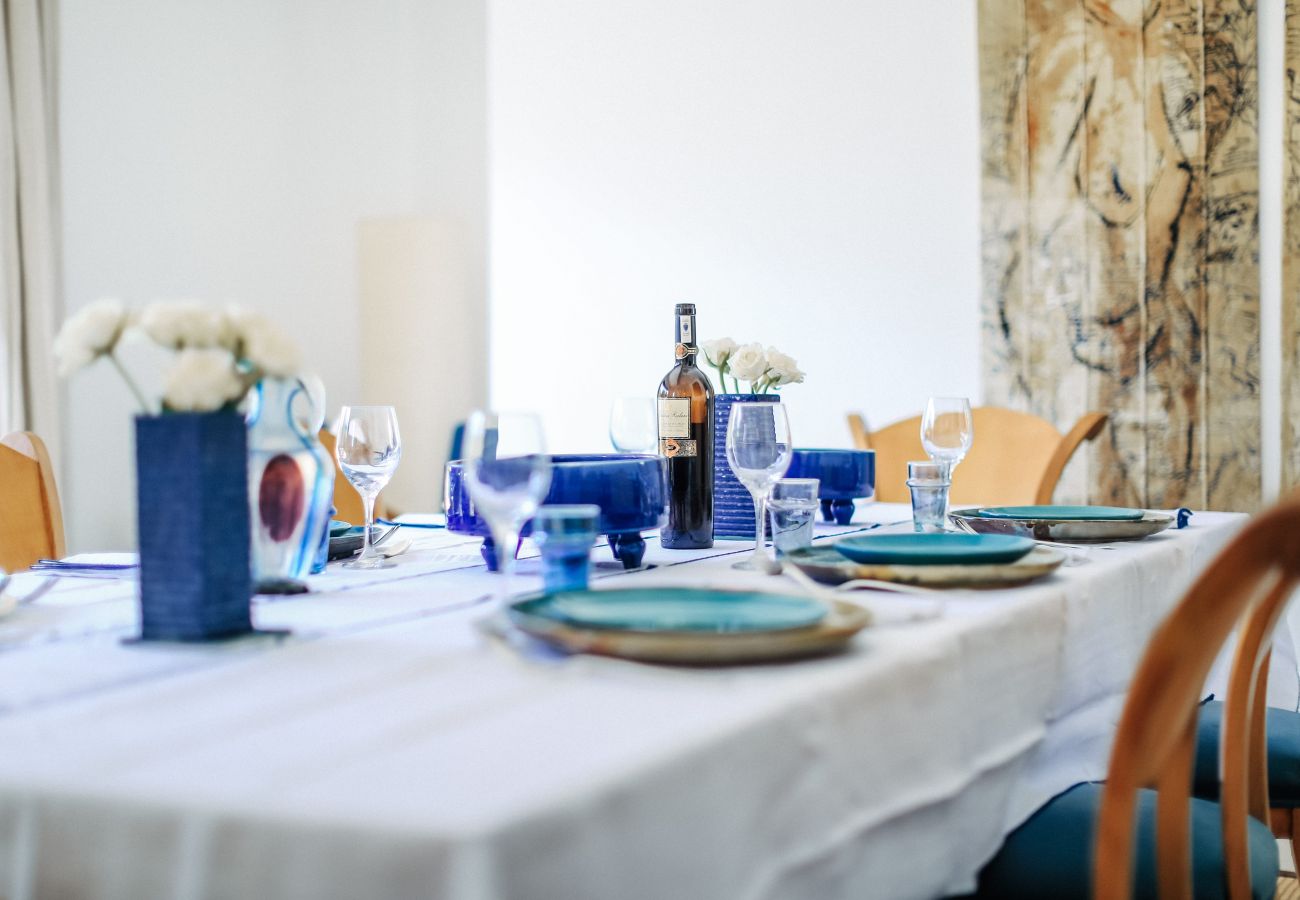 • Jardin méditerranéen structuré, essences locales, coins lounge et espace repas.